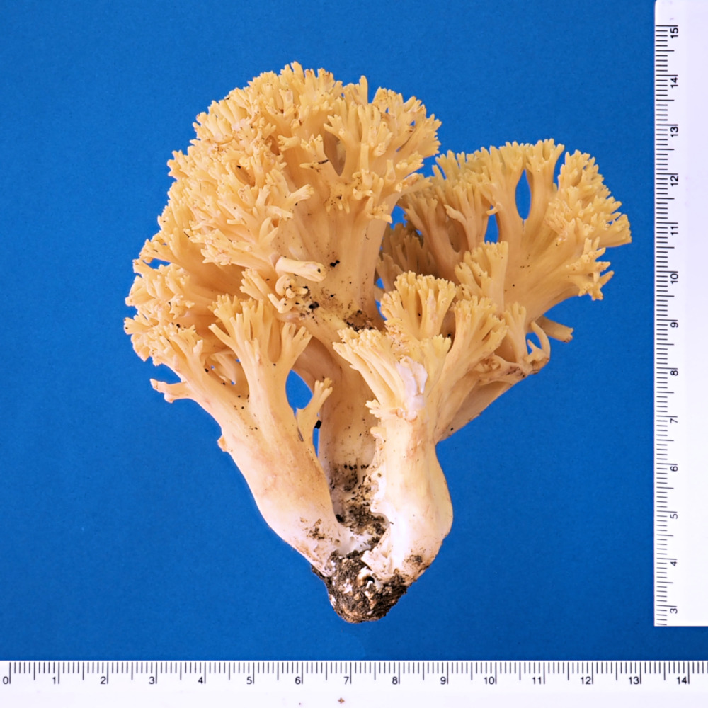 ホウキタケ属は最近の研究で遺伝子解析?をすると、多種多様の種に分かれるそうである。したがって肉眼的形態から種の同定は、ほとんど不可能なのではと思っているが、それでも従来通りの肉眼的形態から種名を付けてみた。