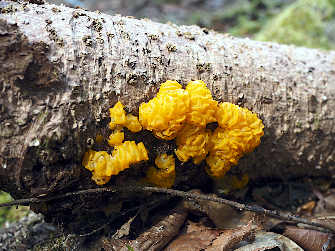吸湿時径6cm、高さ4cmあるいはそれ以上 嚢状(のうじょう)に生じるが拡大し、互いに融合→重なり合った波状−葉状の塊になる ゼラチン質 黄白色−明黄色−黄色−ときに橙黄色 表面は丸みを帯びた波状 平滑 乾燥時収縮し軟骨質