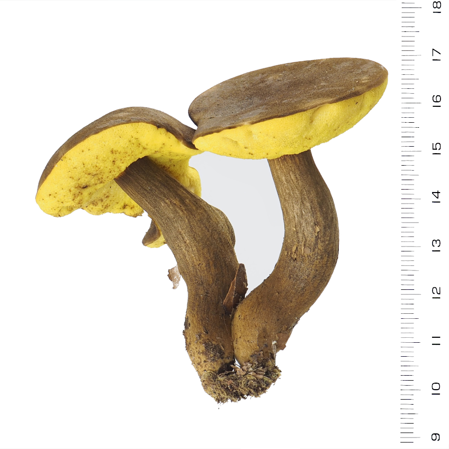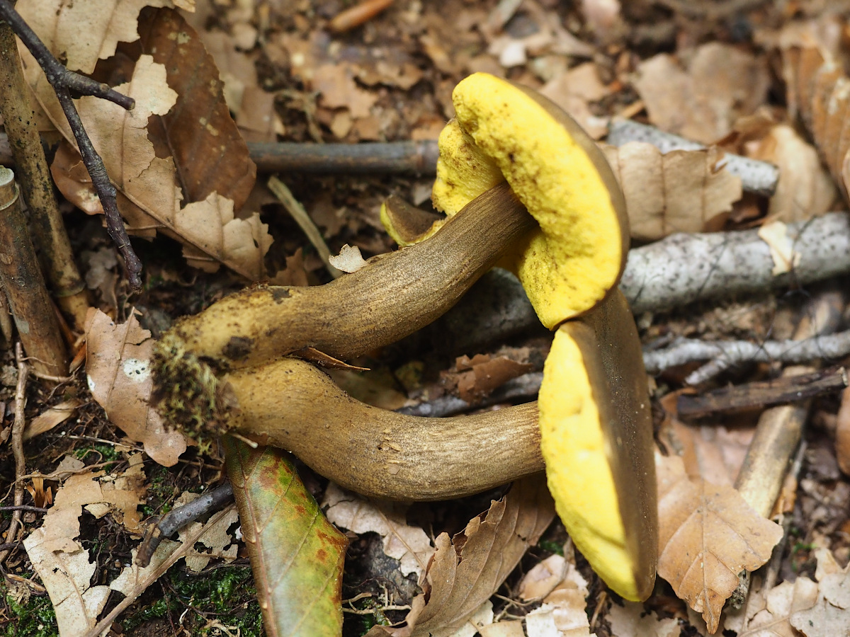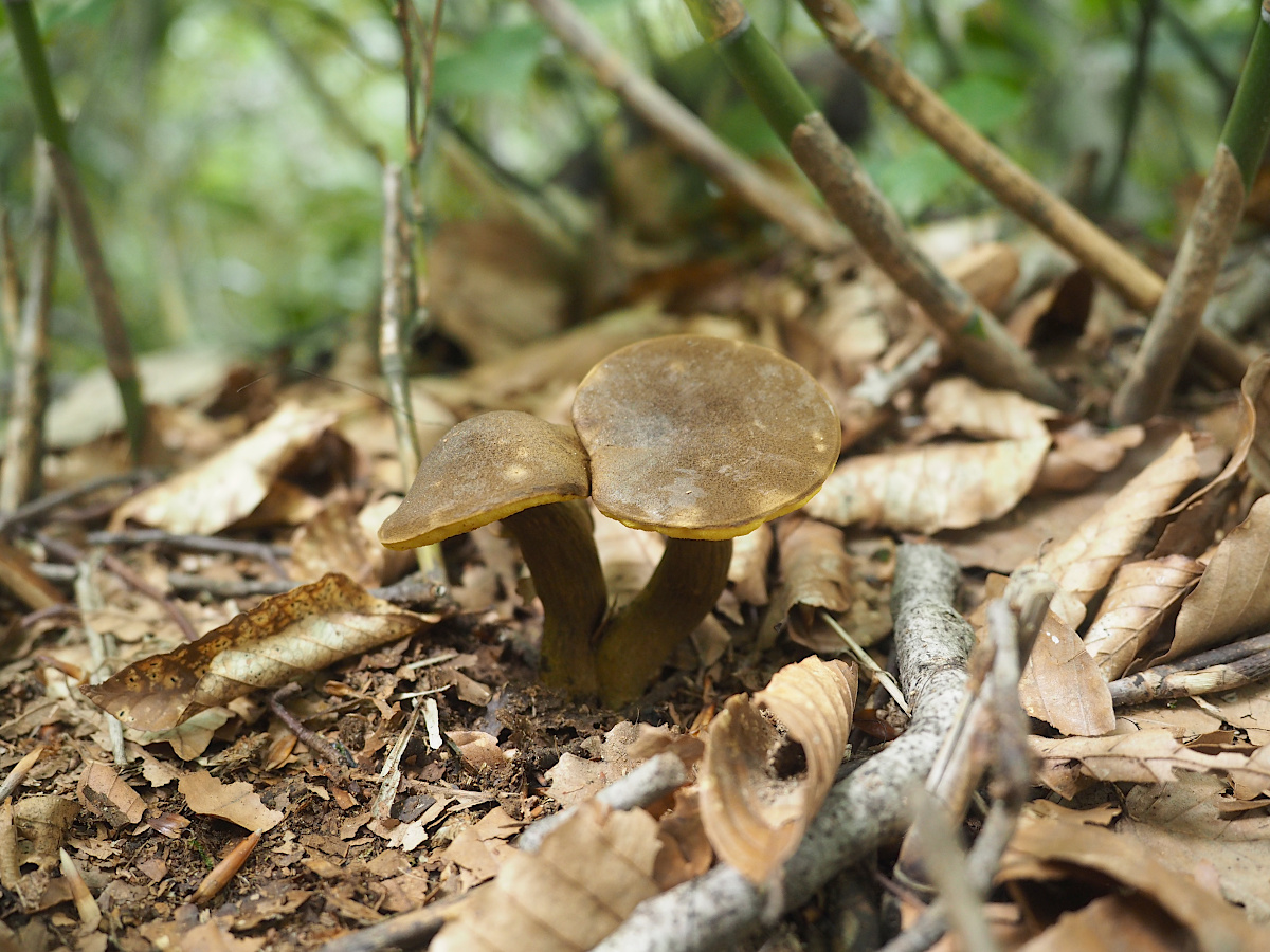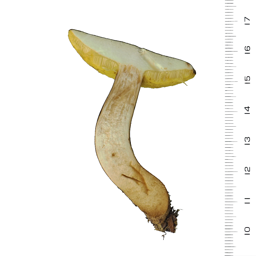 傘部厚い 傘肉は淡黄白色 柄肉は濃黄白色 変色性なし