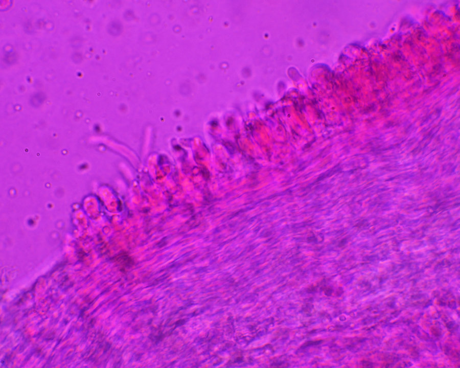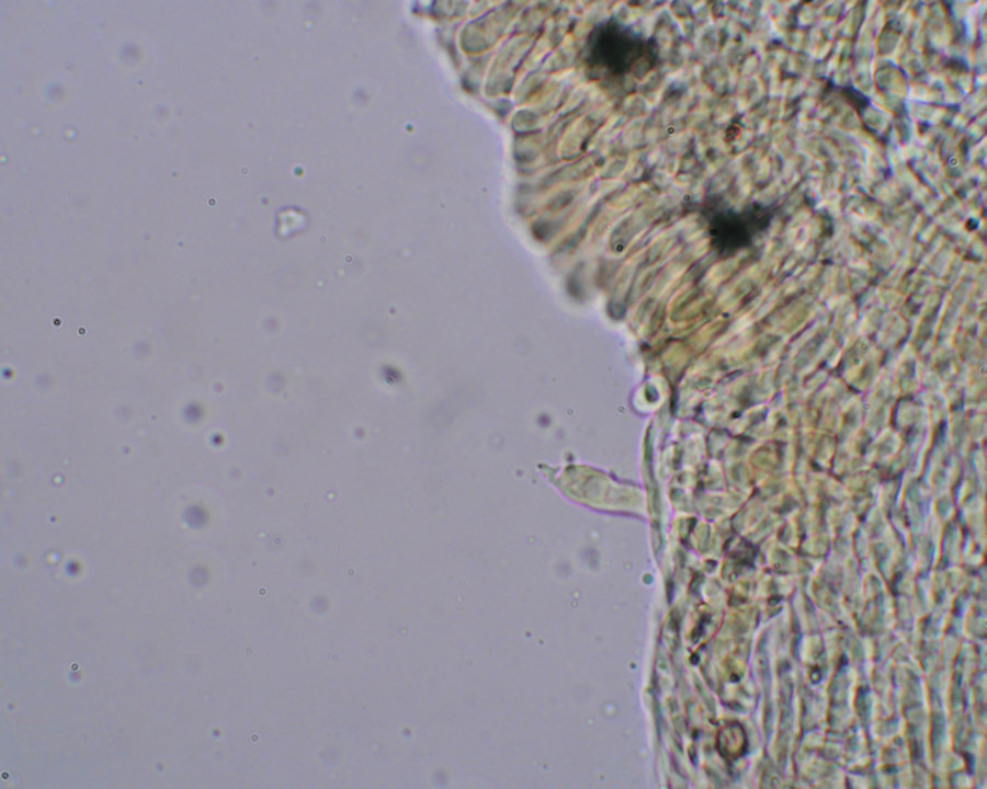 通常の場合、半円形で無柄であるが、地中の材から発生するときは、円形で柄があるような形となると思われる