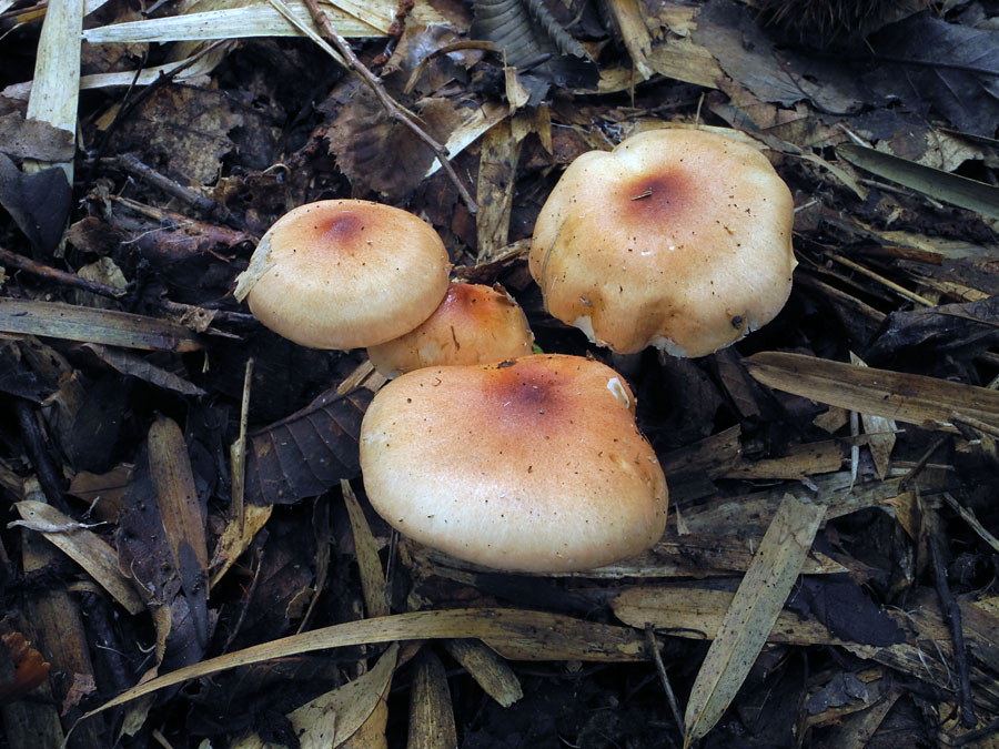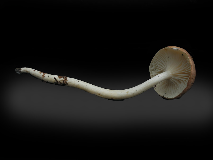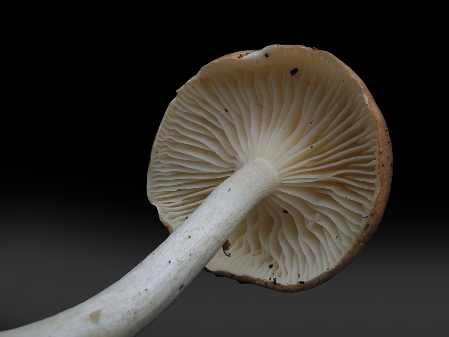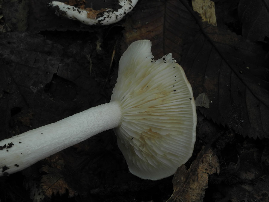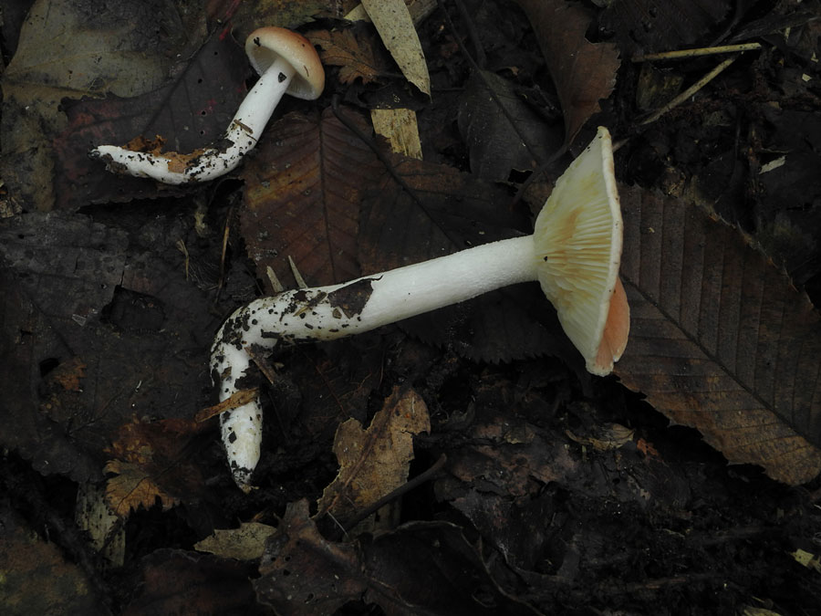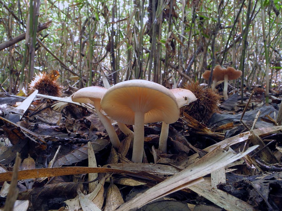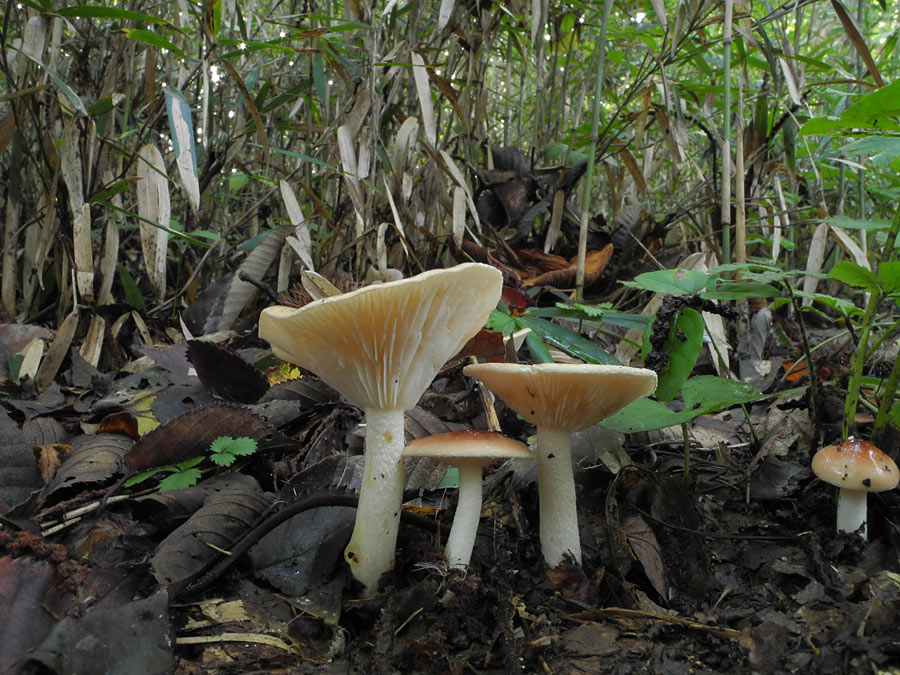 2013年10月10日 撮影地 宇津峰山の子実体は、ひだが垂生に見えるので別種の可能性あり。ひょっとするとチャヌメリガサの可能性あり。