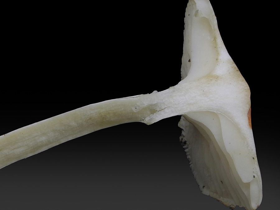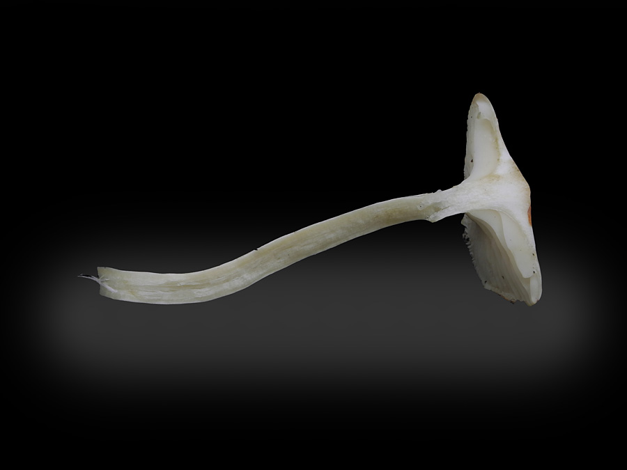 5.0-10.0cm 上下同径で屈曲し 基部細まる 頂部粉状 中位以下条線あり 白色 中実−随状