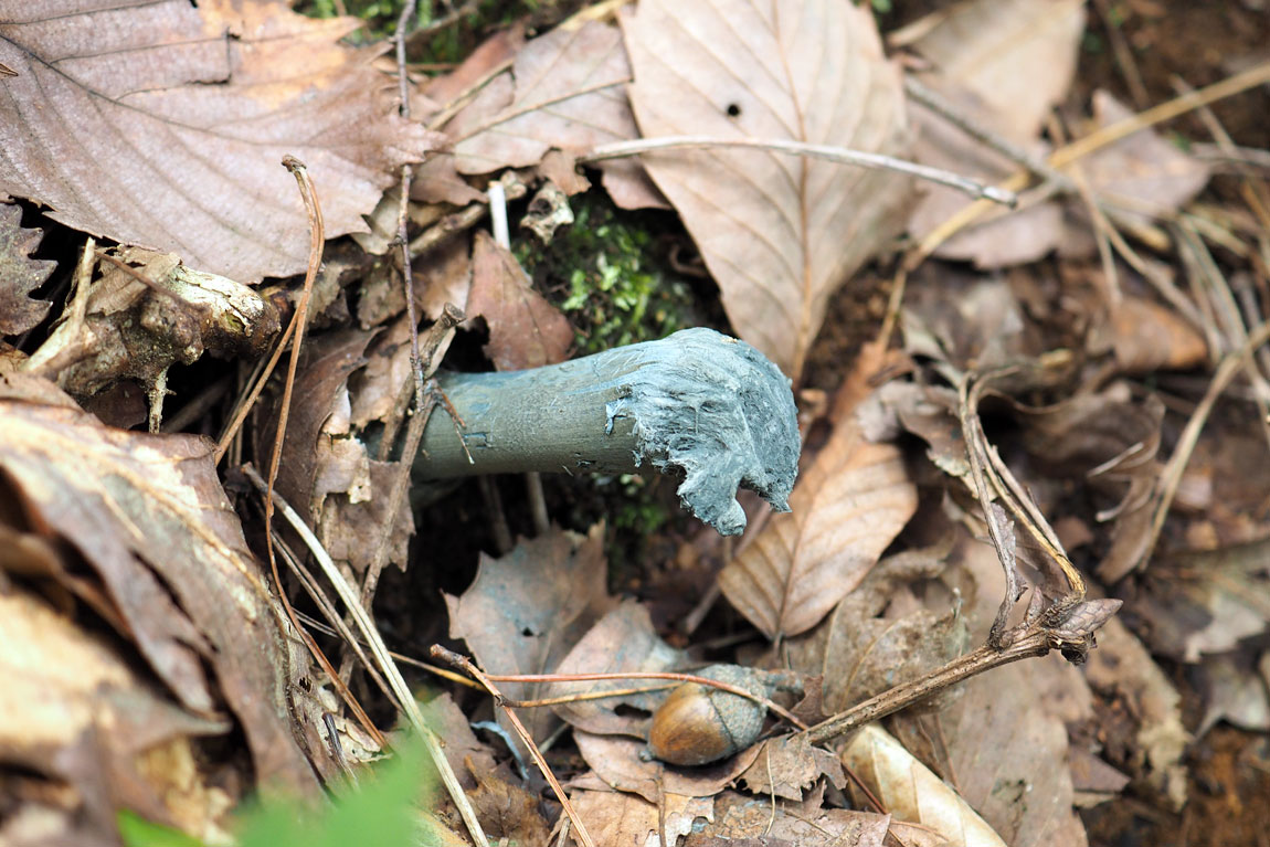 2017年(平成29年)09月29日 撮影地 福島県南部の幼菌に近い状態でも子嚢胞子は確認できなかったが、「さらに小さい幼菌で子嚢胞子が確認できる」とご教示いただいた。つまり、殻皮が裂開直後あるいは直前だろうか。