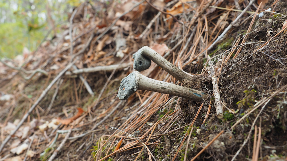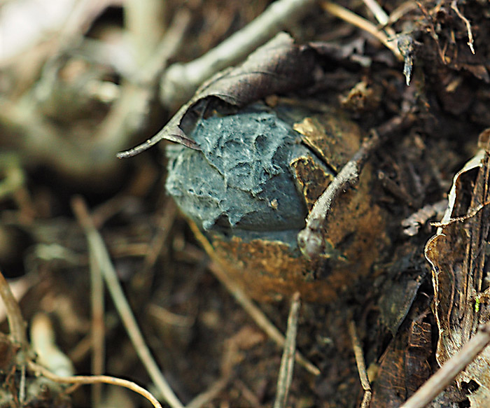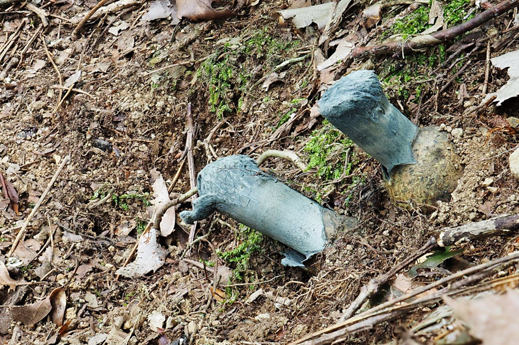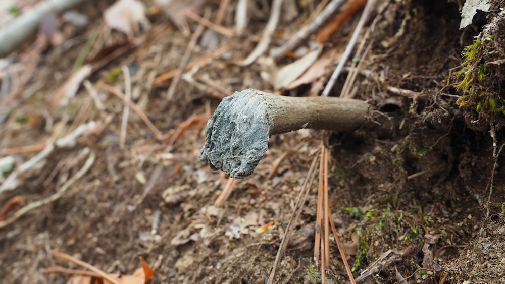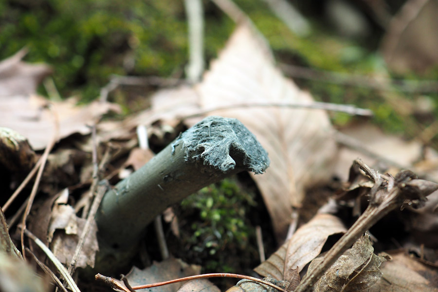 当地での発生は9月下旬〜10月初旬であるが、成熟して胞子を拡散した後も長い期間形が残っているようだ。2021年(令和3年)04月16日 撮影地 福島県中通りの子実体は冬を超えた子実体と思われる。