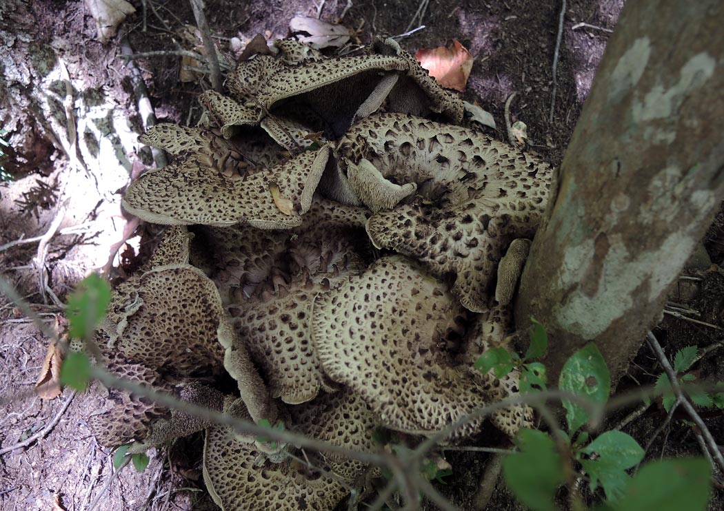 2013年10月10日 撮影地 宇津峰山の子実体はコウタケとシシタケの両方の特徴をそなえている。