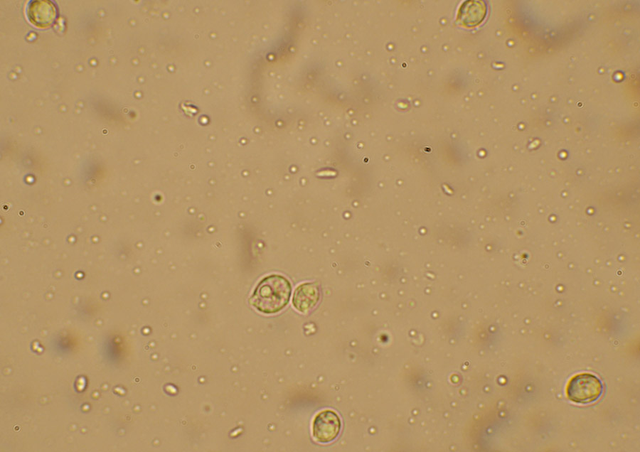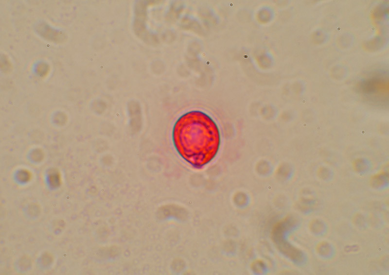 ■2016年(平成28年)05月03日 撮影地 県南 フロキシンで染めて胞子の縁に焦点を合わせてみた。
