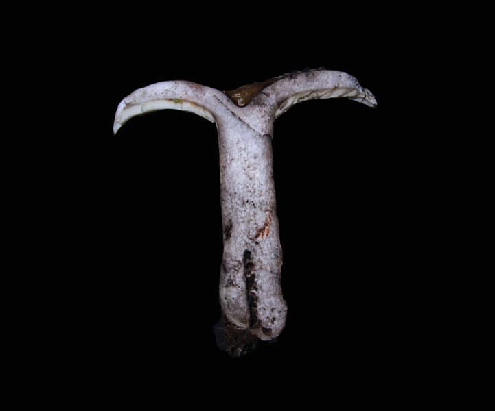 3.0-5.0cm×10-20mm ほぼ上下同径 白色→黒色を帯びる 触れると黒ずむ 随状