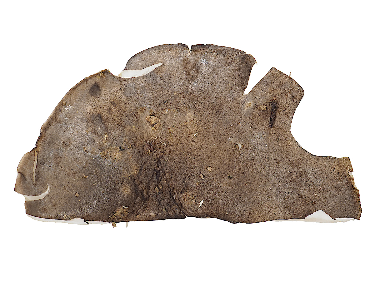 径1.5-4.0p まんじゅう形→平ら−中央部がややくぼむが、ひだが柄に長く垂生するため倒円錐形を呈する 黒褐色 周辺部は淡色 ややビロード状