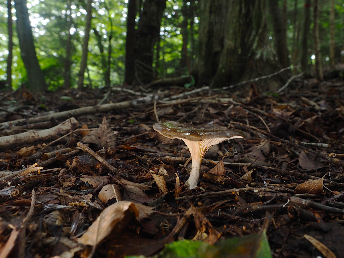 夏〜秋に林内(シイ)、ブナ科樹林内地上に発生する