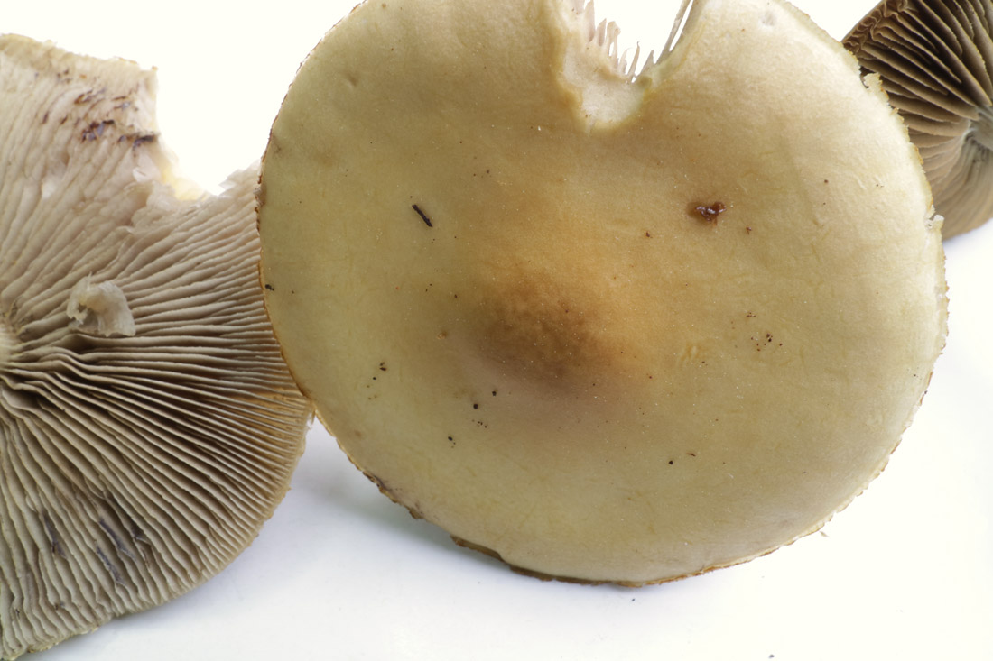 2.0-6.0p前後 丸山→まんじゅう形→平ら 淡黄土色−黄土色 中央褐色 吸湿性 平滑 縁部に膜片を付着するが落ちやすい