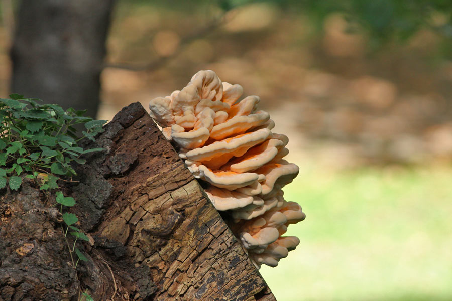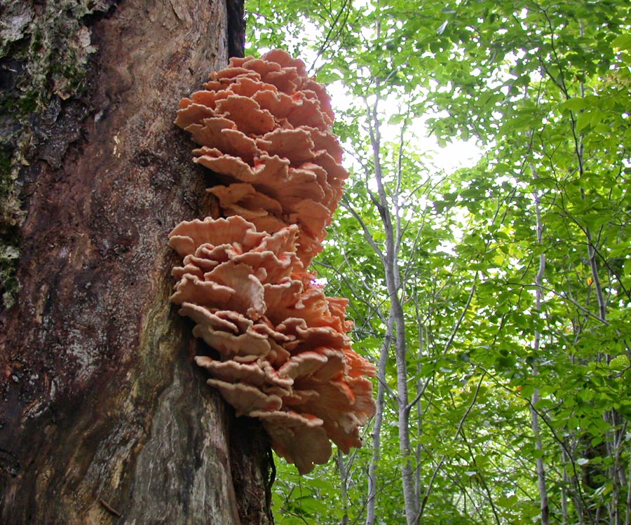 夏〜秋に広葉樹材立木枯死部−広葉樹朽木に発生する