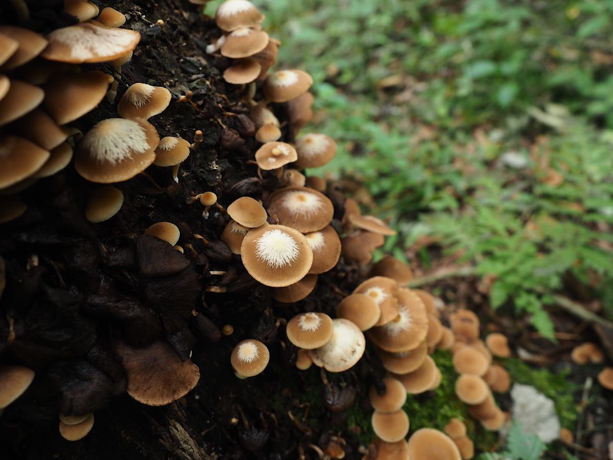 夏〜初冬 広葉樹の朽木やその付近に束生-群生
