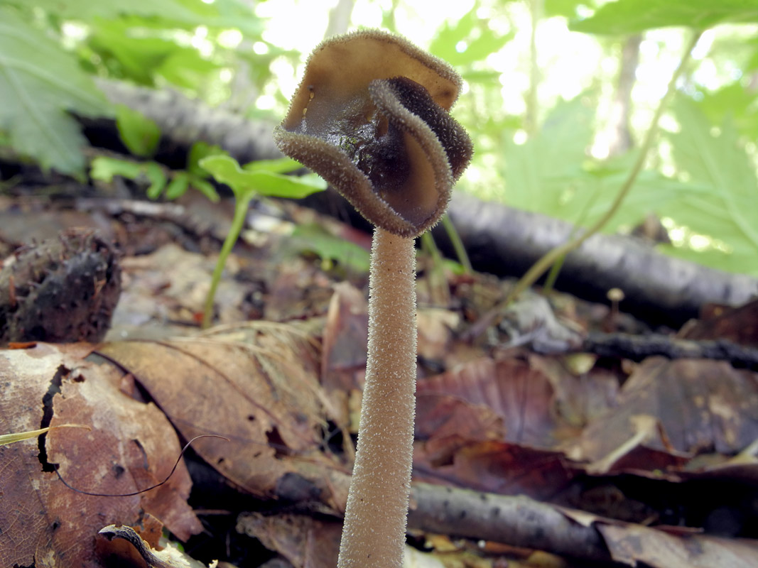 アシボソノボリリュウは子実層も裏面も平滑とのこと。右記URLを参照されたい。http://chawantake.sakura.ne.jp/data/Helvella_elastica.html