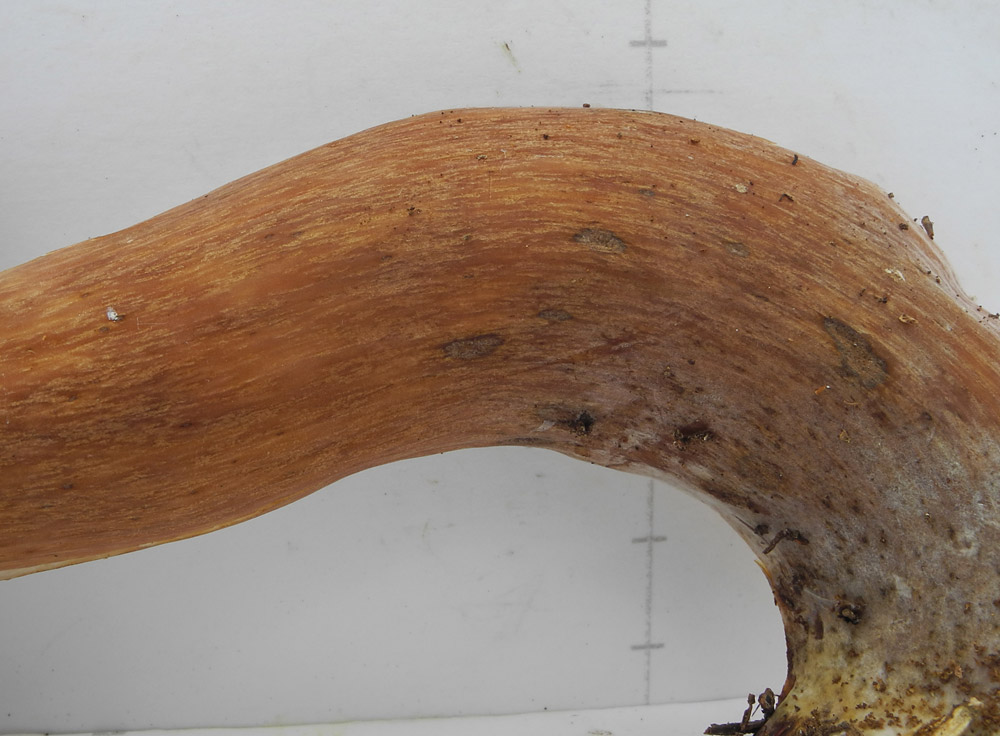 白色→淡紅色−帯紫淡赤色 孔口は淡紅色−ワイン色 小型 傷による変色性無し 直生−上生−ほぼ離生 孔長6mm内外