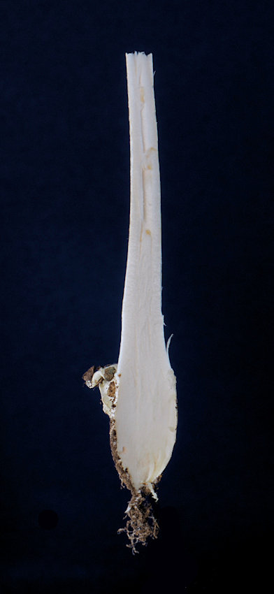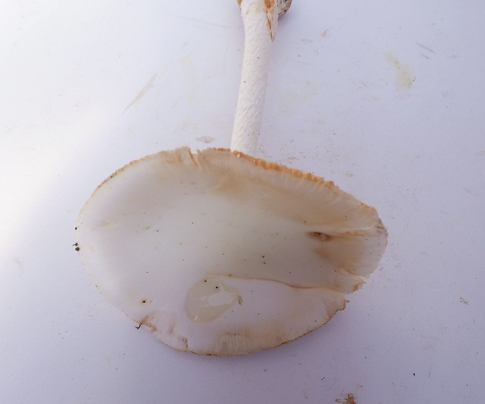 (注)傘表皮の色について;半日以上経過後(標本撮影時)は全体に極淡い橙黄色になってきた。参照文献には解説されていないがこの種の特徴だろうか。