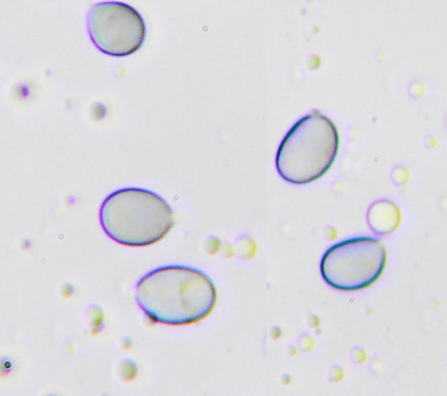 胞子紋は白色 胞子は楕円形−広楕円形 アミロイド
