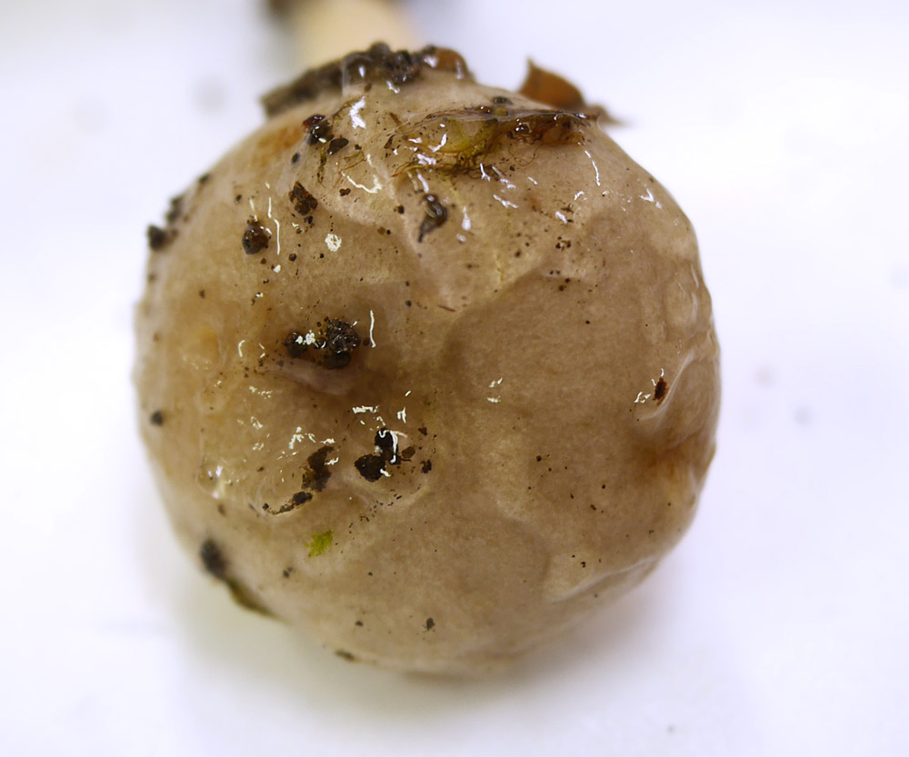 3.0-5.0cm×6-18p 上下同大→成熟で部分的に隆起 類白色 平滑 粘性無し 中空