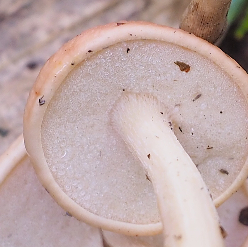 白色→淡紅褐色 孔口も管孔と同色? 直生−離生 孔長3-10mm内外 孔口は大小不揃い?の円形−楕円?−角形 2-3個/mm