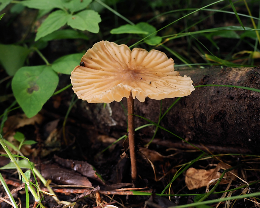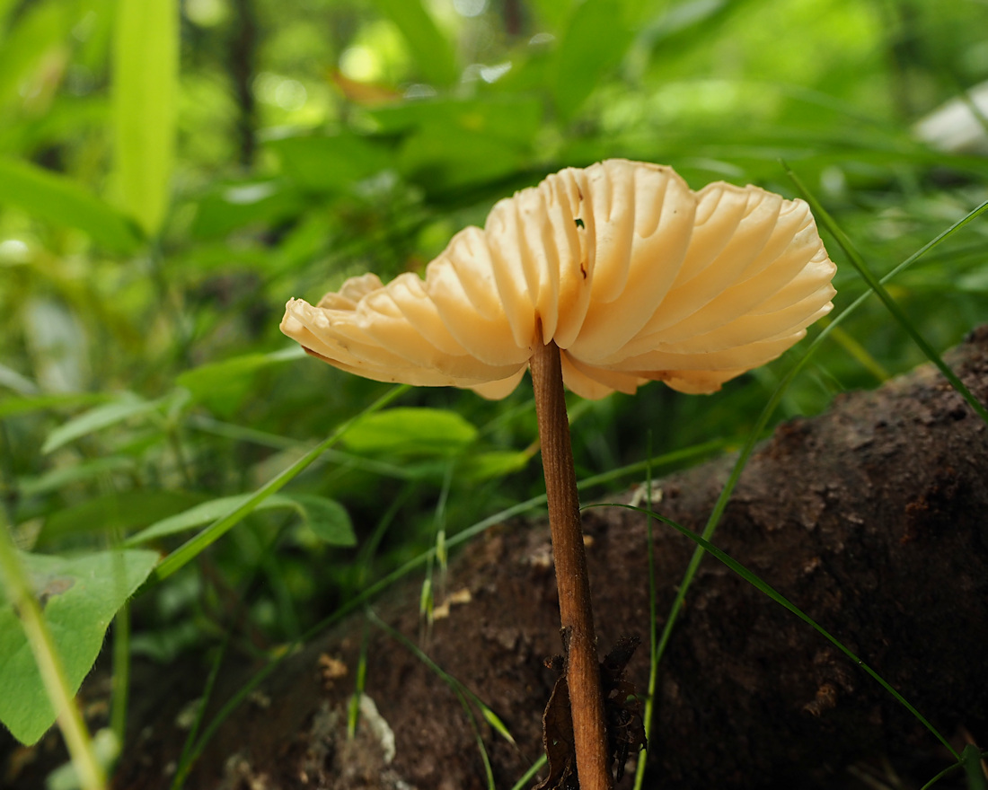 春〜秋(特に初夏のころ)に広葉樹林−タケ・笹やぶの落葉上に発生する