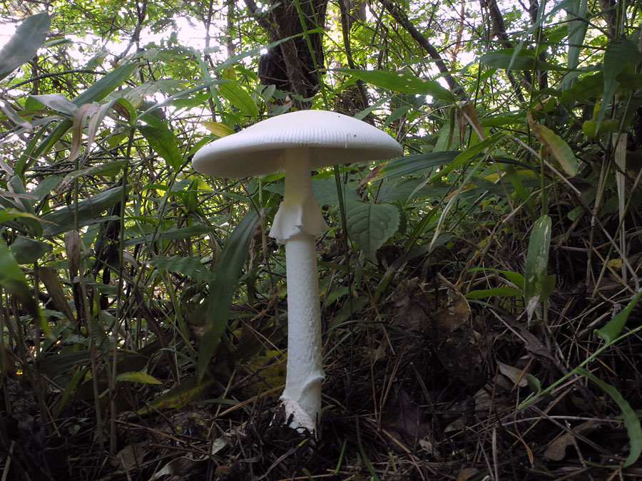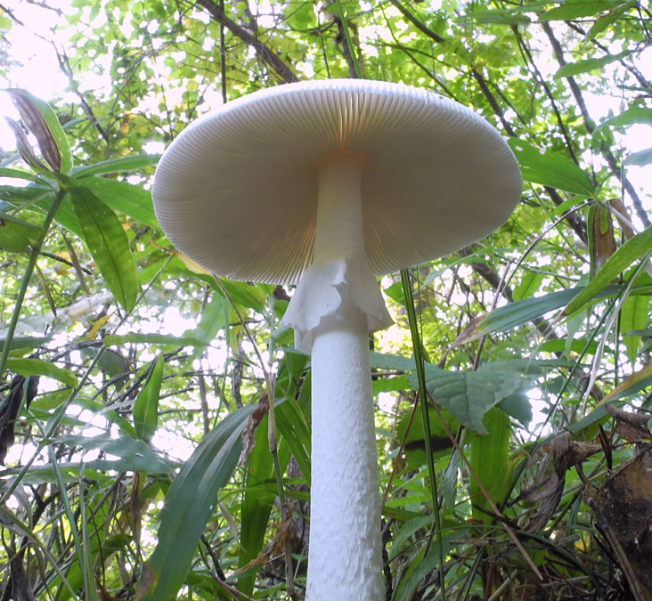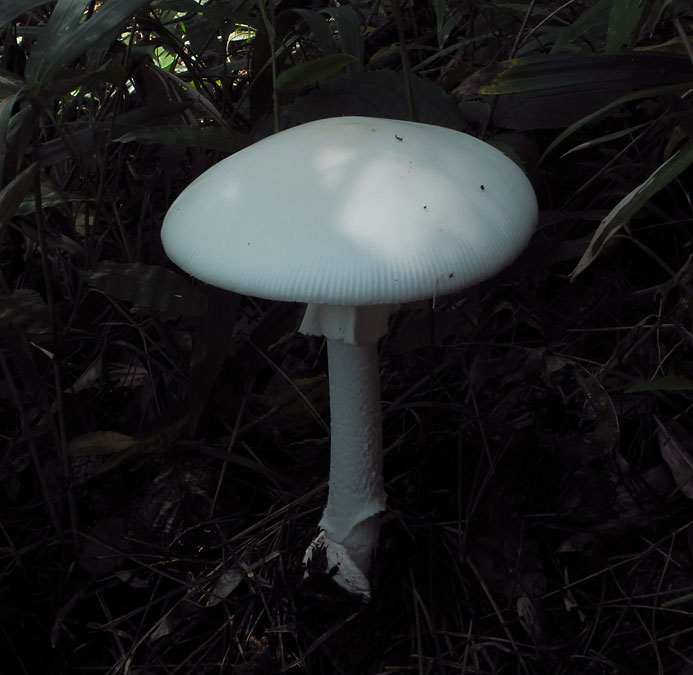 全体の高さが20p以上あった。 オオシロタマゴタケ(仮称)としたが、アケボノドクツルタケの可能性もある。