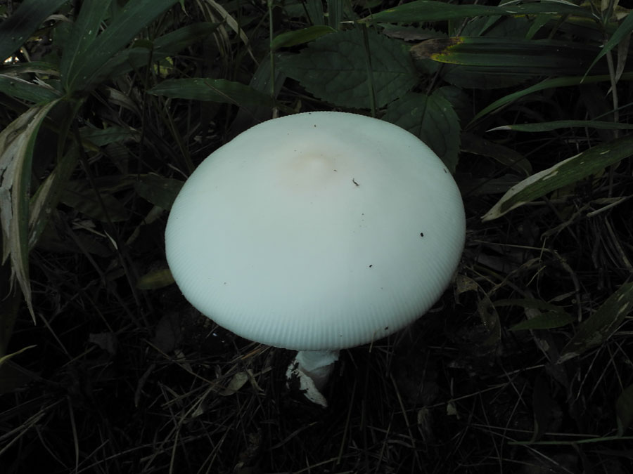しかし、アケボノドクツルタケは「かさのふちは滑らか、もしくはかすかに条線を有する」らしい。2014年以降に再度観察したい。ミヤマタマゴタケの白色型の可能性もある。