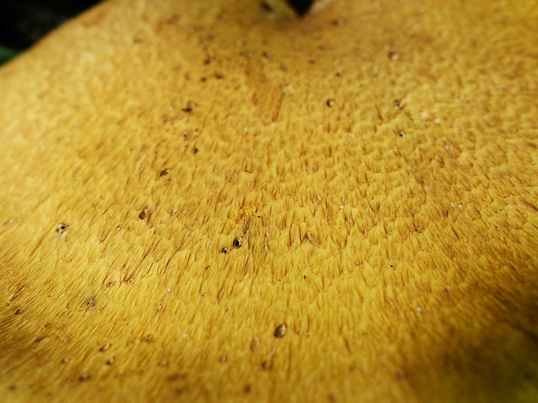 5.0-15.0cm 半球形−まんじゅう形→ほとんど平ら 黄金色−帯褐橙黄色 細かい繊維紋あらわす