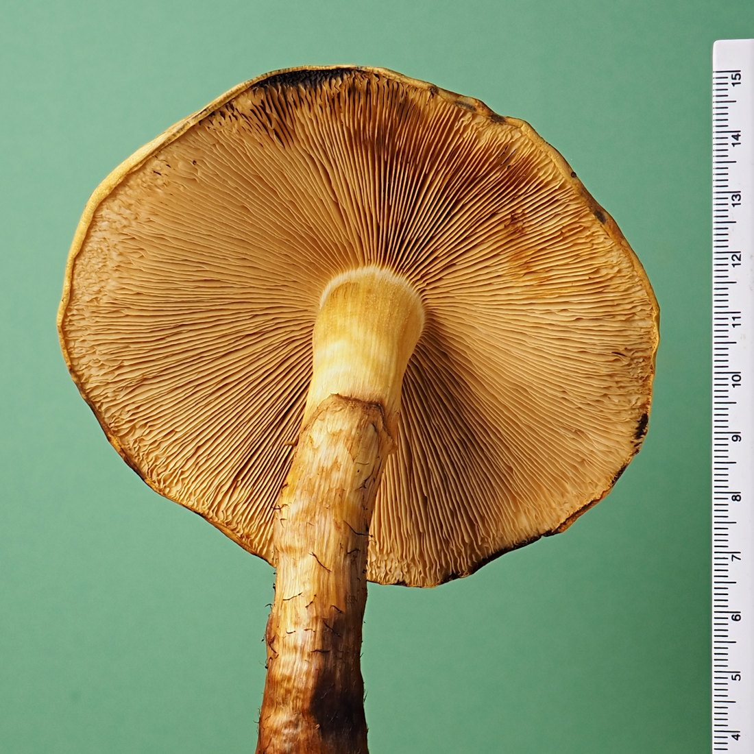 帯黄色→明褐色 直生−わずかに垂生 密?−やや密?