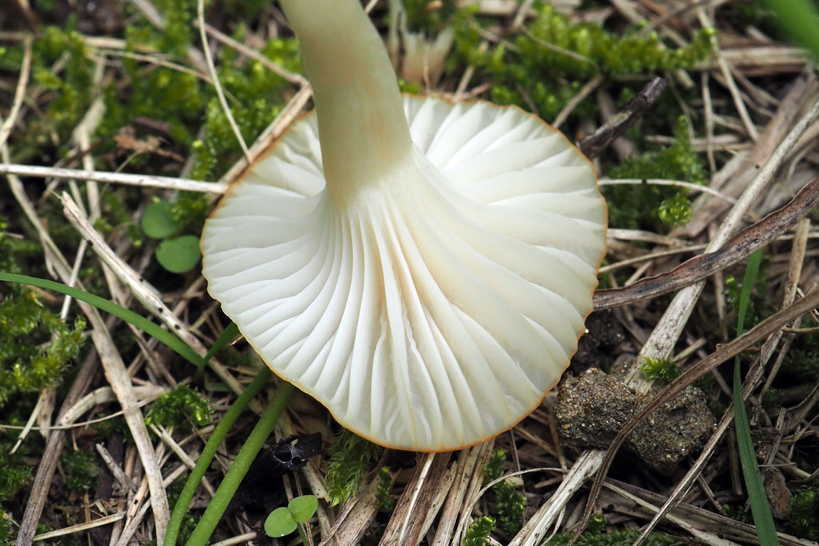 白色 長く垂生 疎 互いに脈状のしわで連絡
