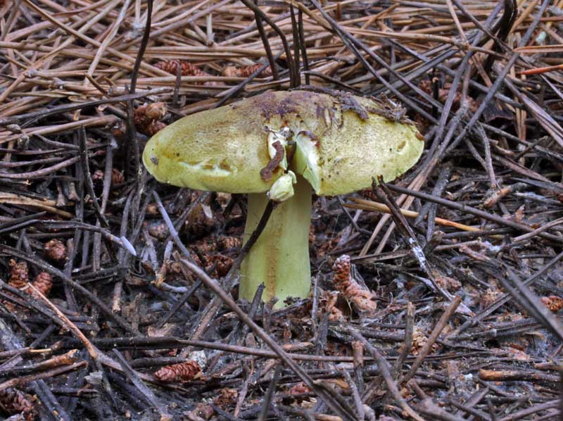 5.0-10.0p まんじゅう形→中高の平ら 硫黄色 中央部は赤褐色帯びる ほとんど平滑 しばしば中央部付近に灰褐色−暗褐色小鱗片生じる 湿時粘性有り