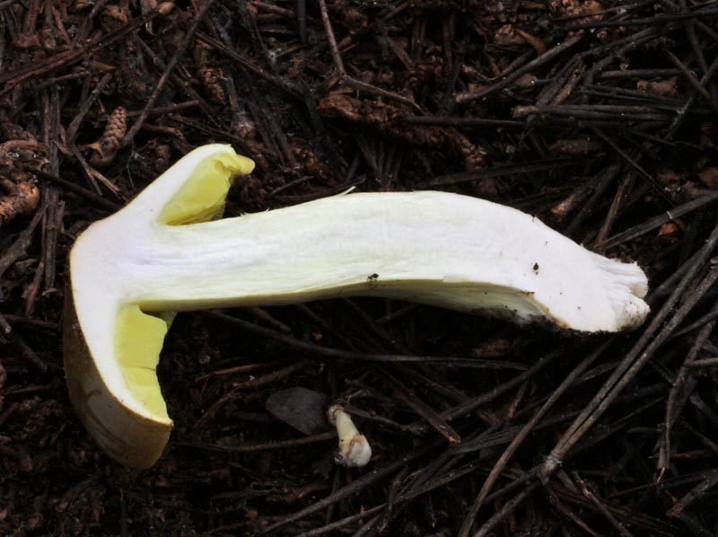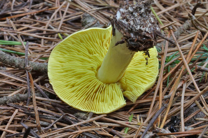 新版北陸のきのこ図鑑にはひだの色が萌黄色と記述されているが、萌黄色とは黄緑色なので記述に疑問が残る