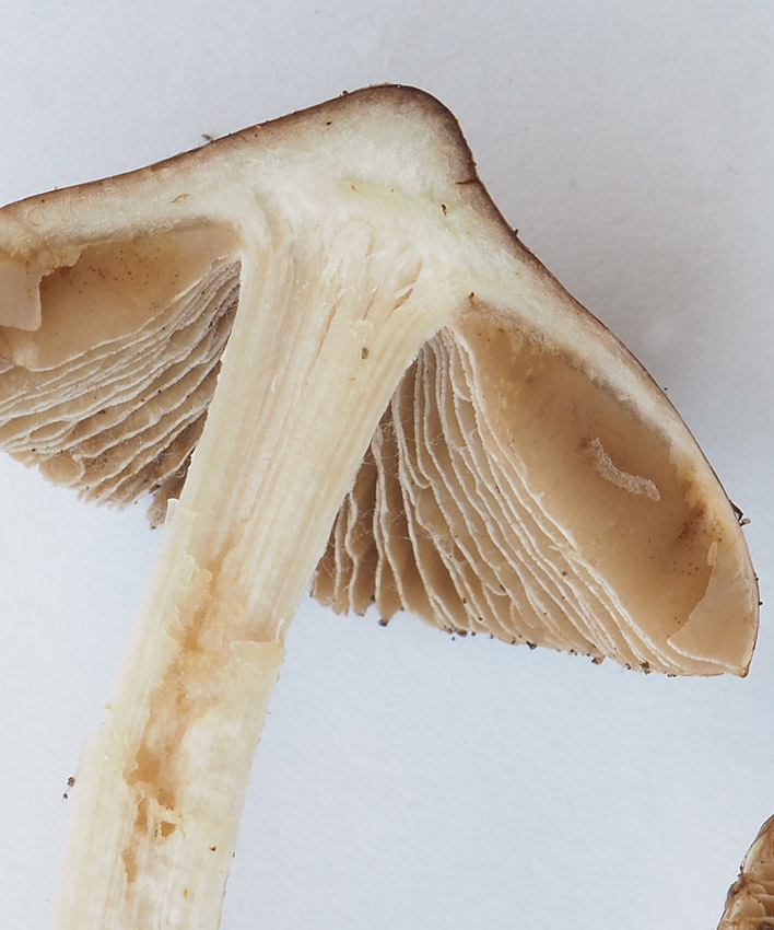 類白色−淡帯褐色 柄肉はときに淡赤色に変色する