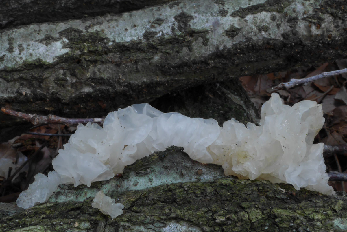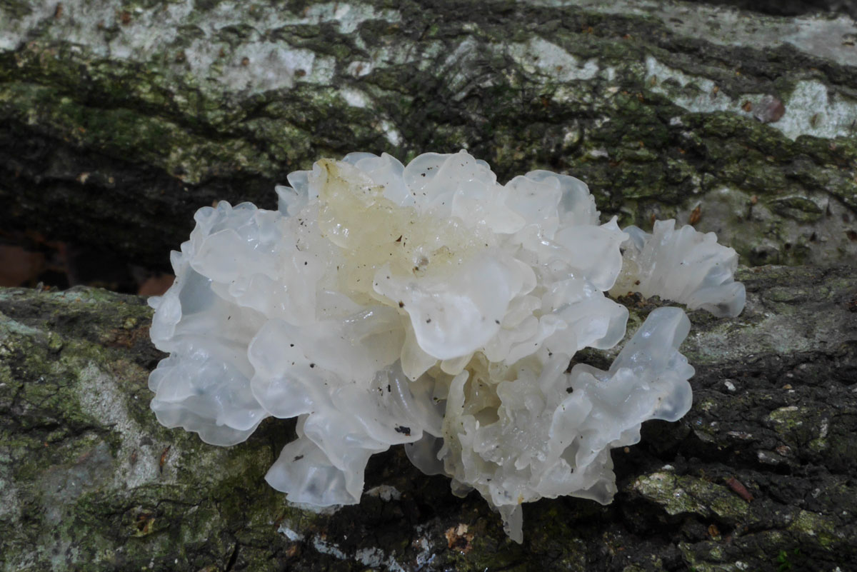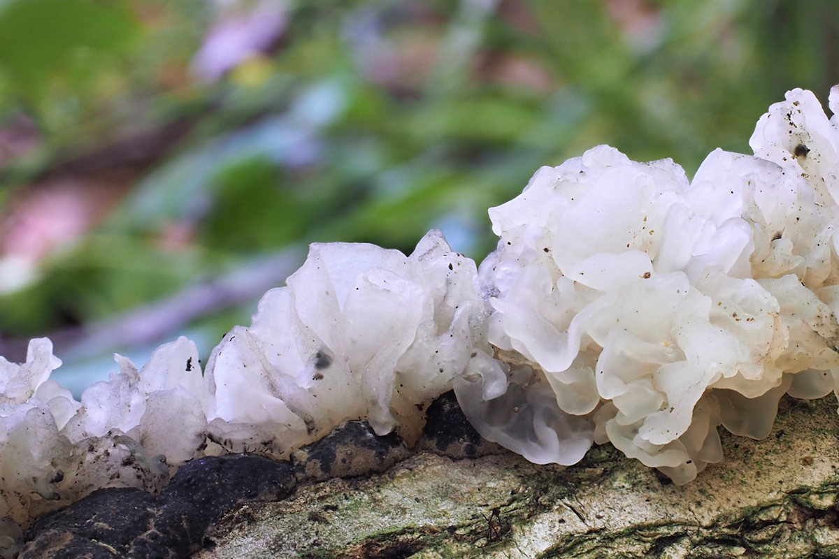 径5.0p-10.0cm前後 高さ5.0cm前後(吸湿時) 不規則な花弁状−単性→不規則なとさか状裂片の集合体 裂片の外縁部は波状−不規則な切れ込み 純白色 吸湿でゼラチン質−膠状軟骨質 乾くと堅い軟骨質 平滑