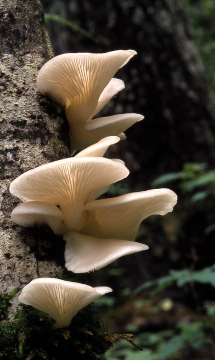 スギヒラタケPleurocybella porrigens ■キシメジ科スギヒラタケ属 発生時期と発生地; 秋−ときに春に林内の針葉樹(特にスギ)の古い切株、倒木発生する 傘 ; 2.0-6.0cm 円形→耳形−扇形−へら形 白色 基部に毛がある 縁は内側に巻く 柄 ; ほとんど無柄 ヒ ダ; 白色 幅狭く 極めて密 しばしば分枝する 肉 ; 白色 薄い 胞子紋; ■ 年 月 日 撮影 ■科別小画像一覧へ □五十音別図鑑へ