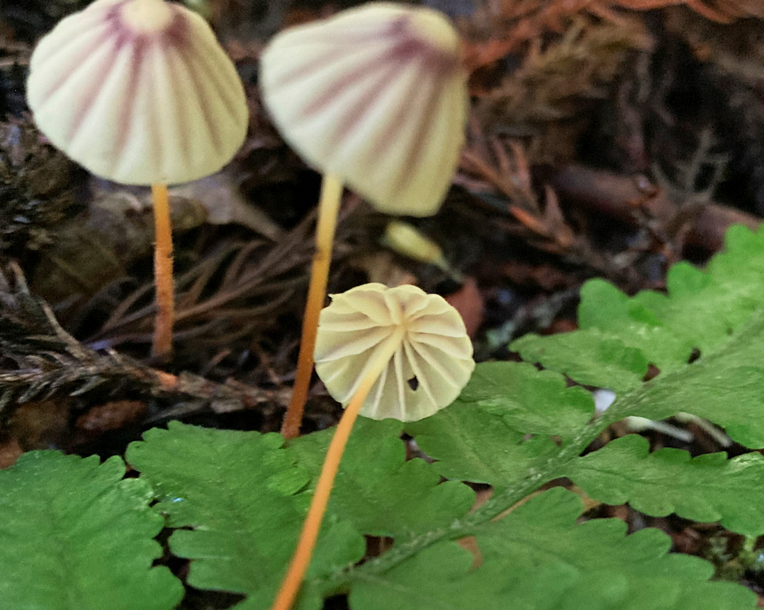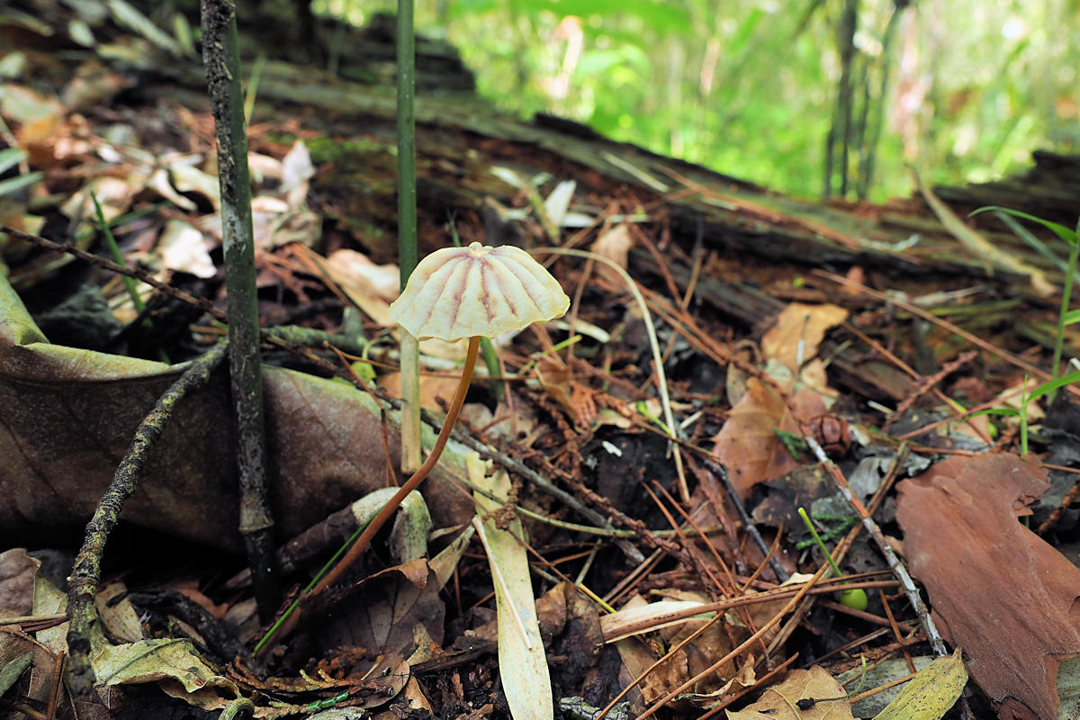 春〜夏に広葉樹林内落ち葉−落枝に発生する