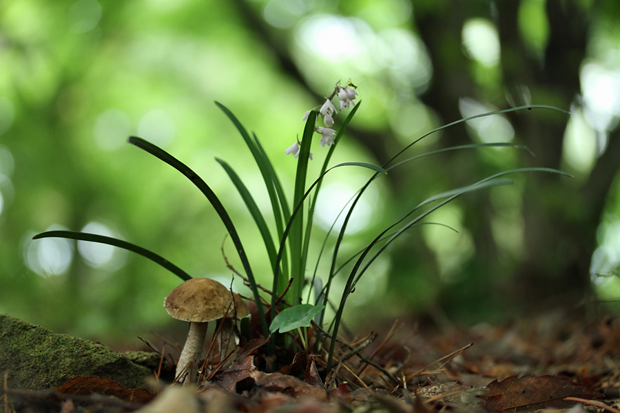 初夏〜秋(主に初夏)に広葉樹林−針葉樹・広葉樹混成林内地上に発生する