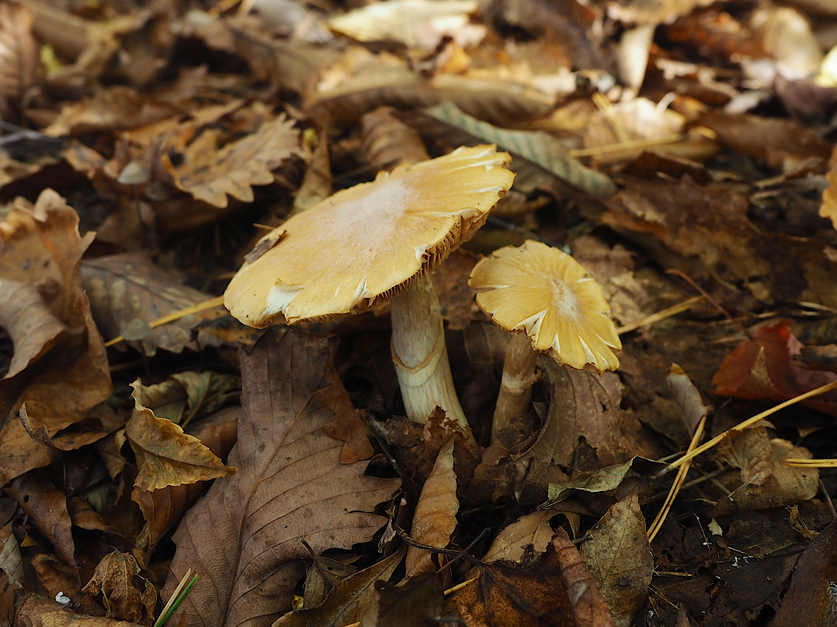 秋10-11月にアカマツその他の針葉樹・ときにコナラ・コジイなどの広葉樹林地上に発生する