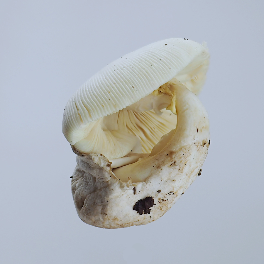 肉眼的形態は色合いを除きタマゴタケと同一で、胞子サイズも同サイズ内であることから、白色のタマゴタケとした。
