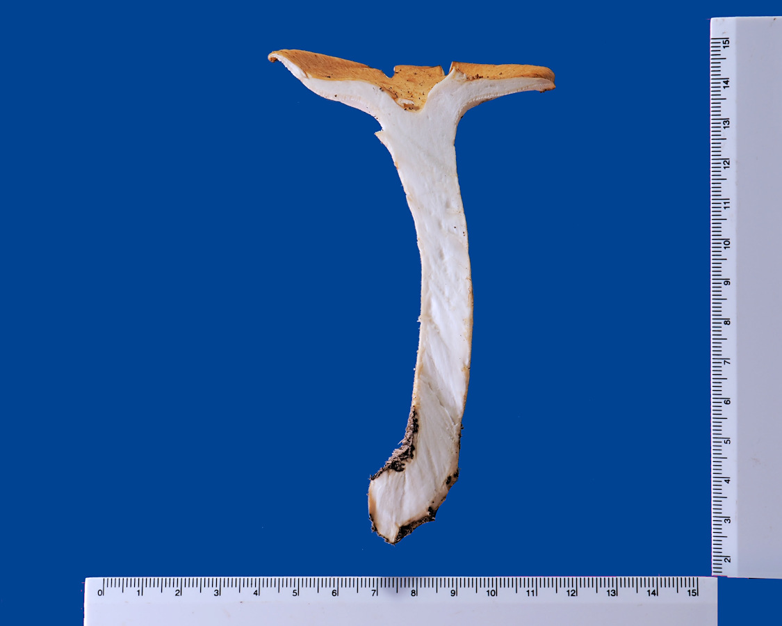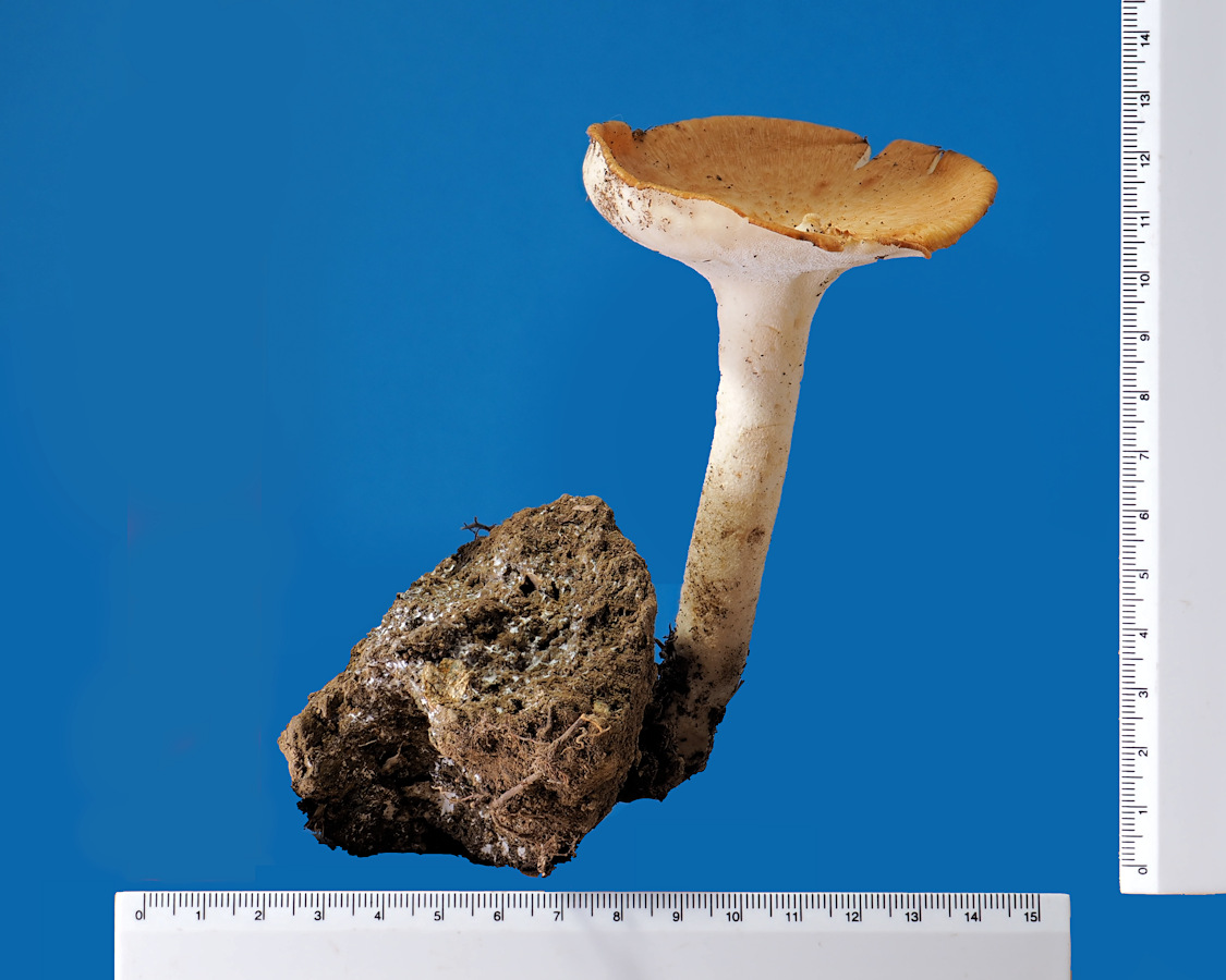 胞子は長楕円形 無色 平滑 しばしば地中に5.0-20.0cmの球塊状の菌核をつくる