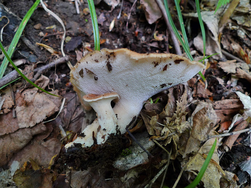 白色−乳白色 管孔長さ1-3mm 孔口も同色 孔口は円形→角形−放射状に長くなり柄に垂生