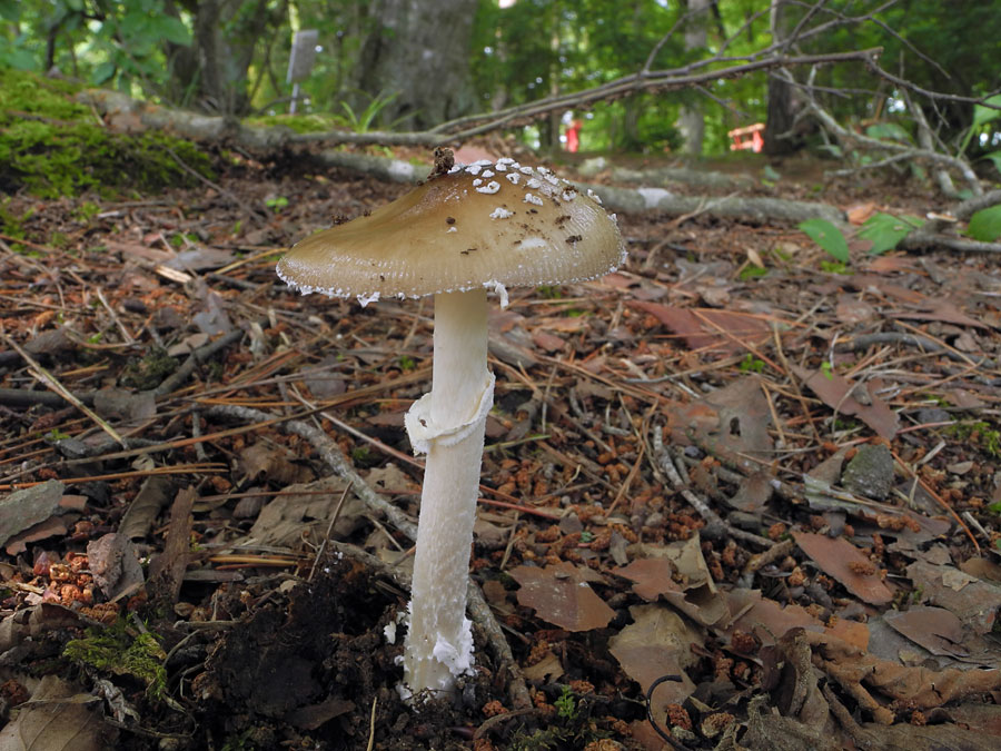 ■2013年09月18日 撮影地 牡丹園 幼菌の外被膜をみると,イボテングタケに比べ,イボイボ感がなく平坦に見える。