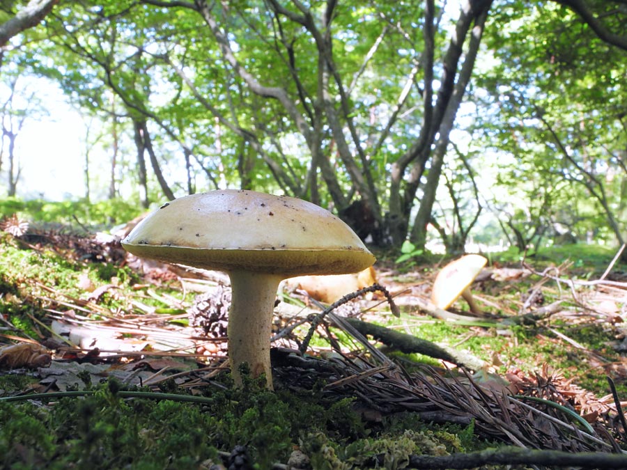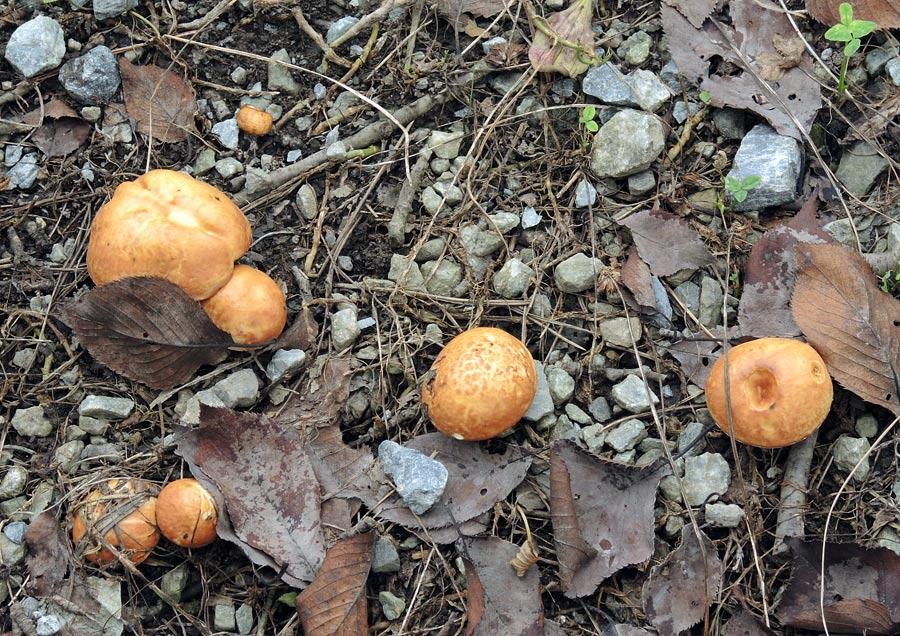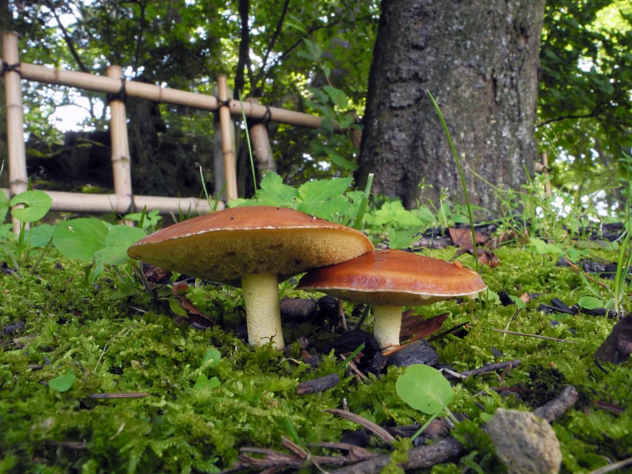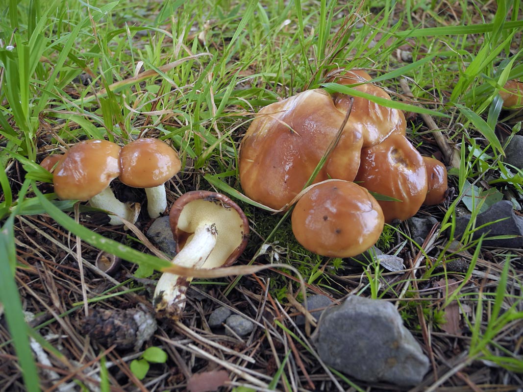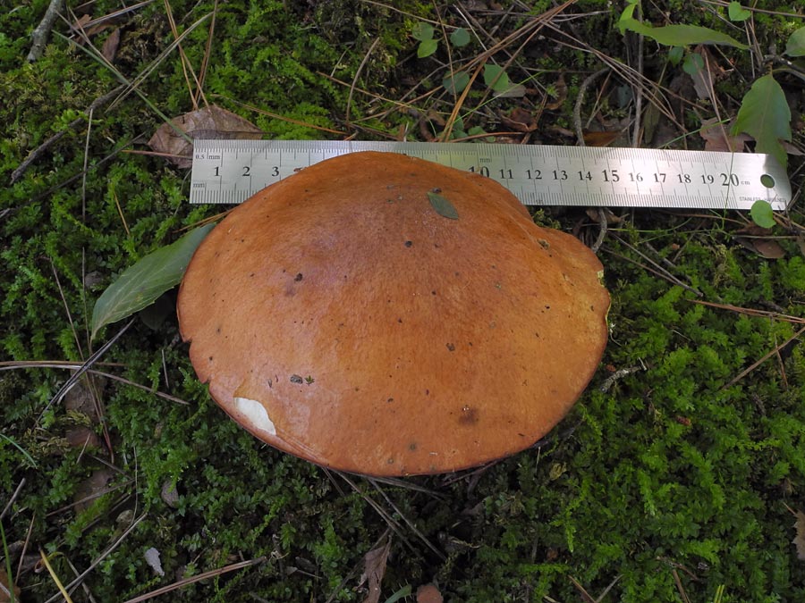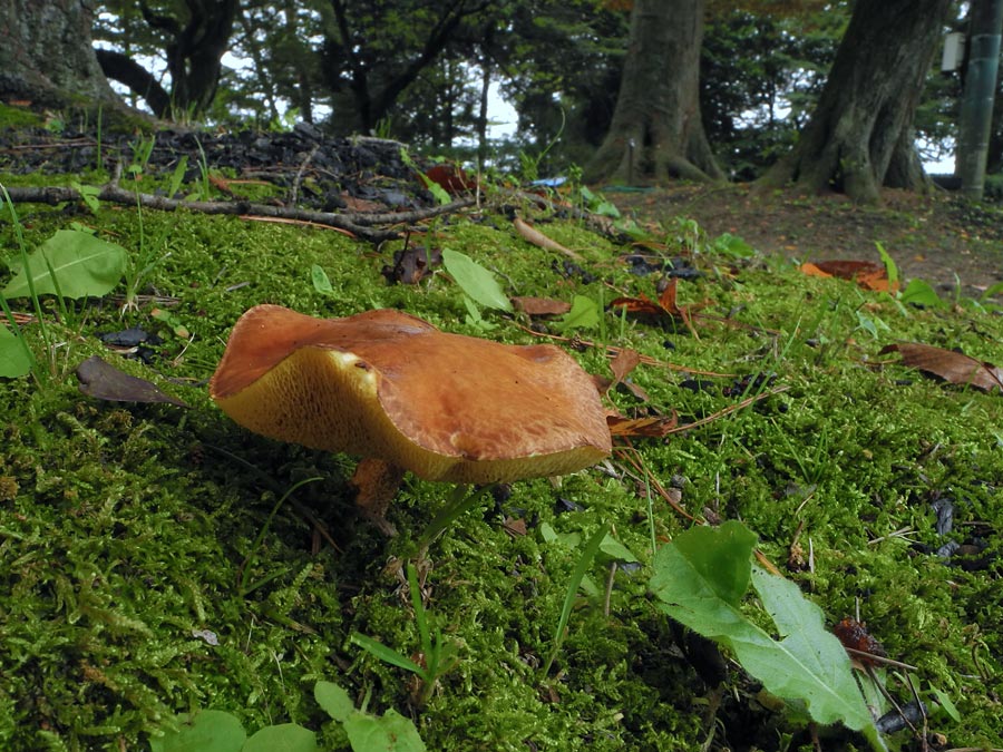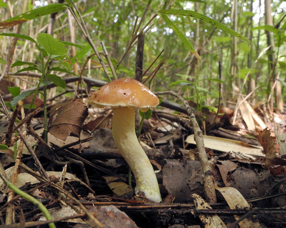 夏〜秋にアカマツ林など二針葉マツ−まれに五針葉マツ樹下に発生する