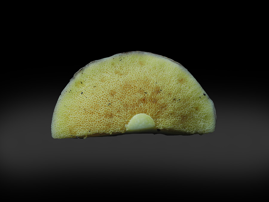黄白色−黄色 ときに傘縁部や柄部が帯紫色 傷ついても不変 軟質