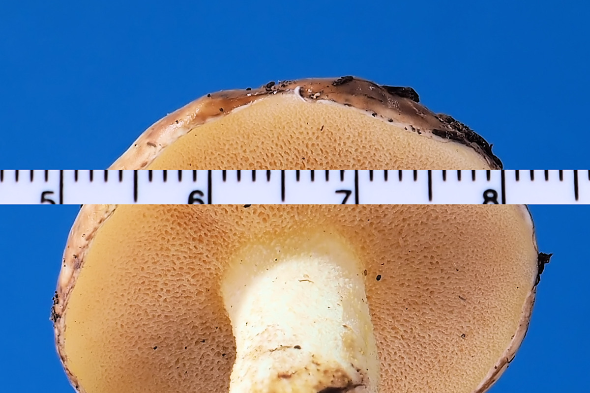 3.0-10.0cm 半球形→平たい饅頭形→平 湿時強粘性 強粘性時クリ褐色−黄土褐色→粘性失われ黄色 表紙剥ぎやすい