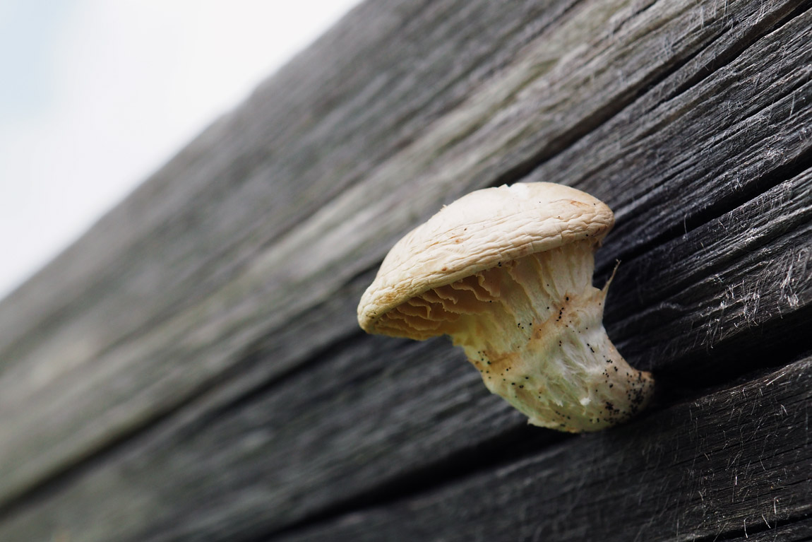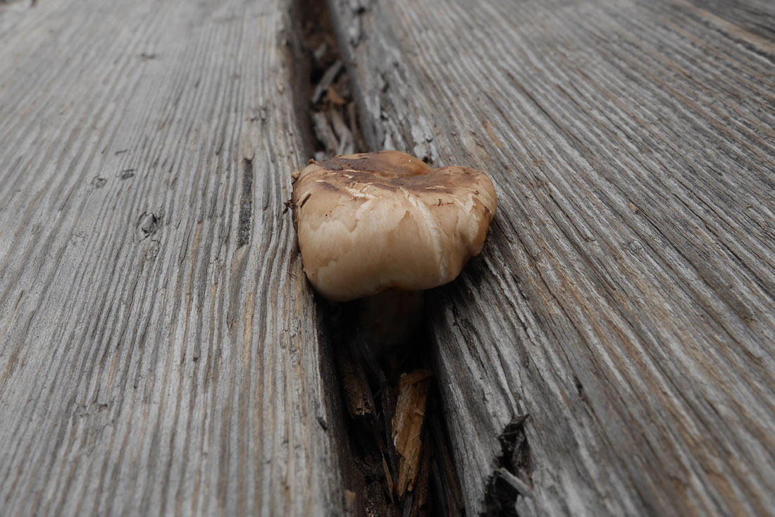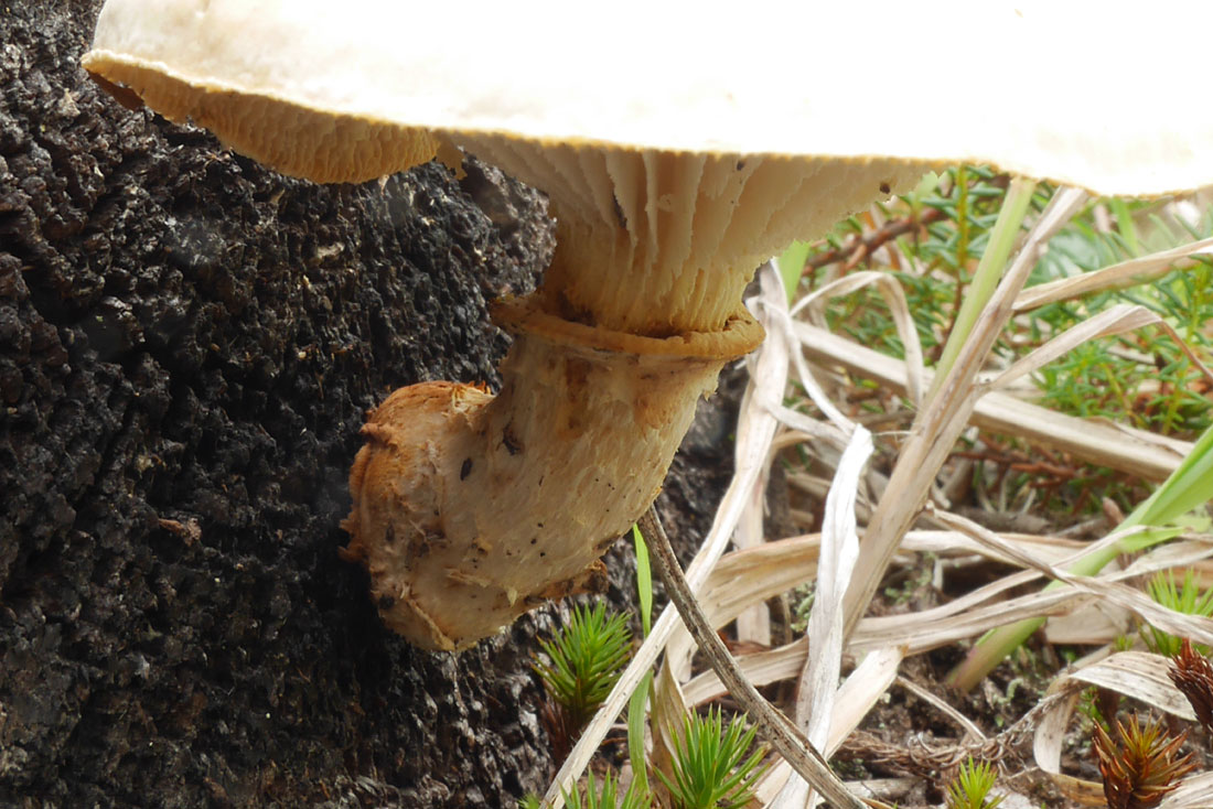 春〜初夏にスギ−アカマツなどの針葉樹の倒木−切り株上に発生する