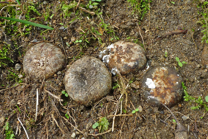 夏〜秋に林内裸地上に発生する