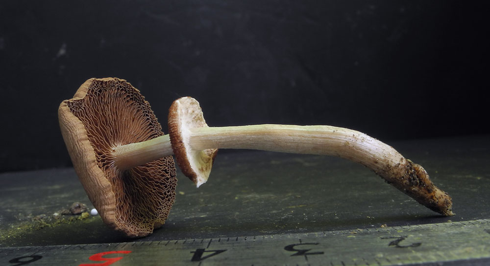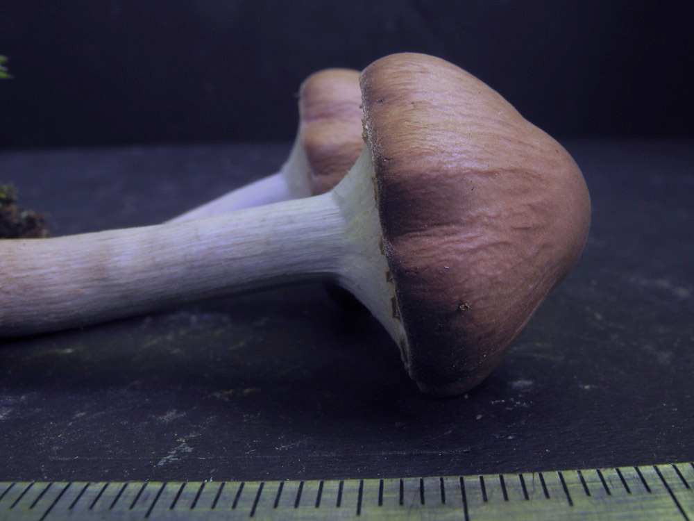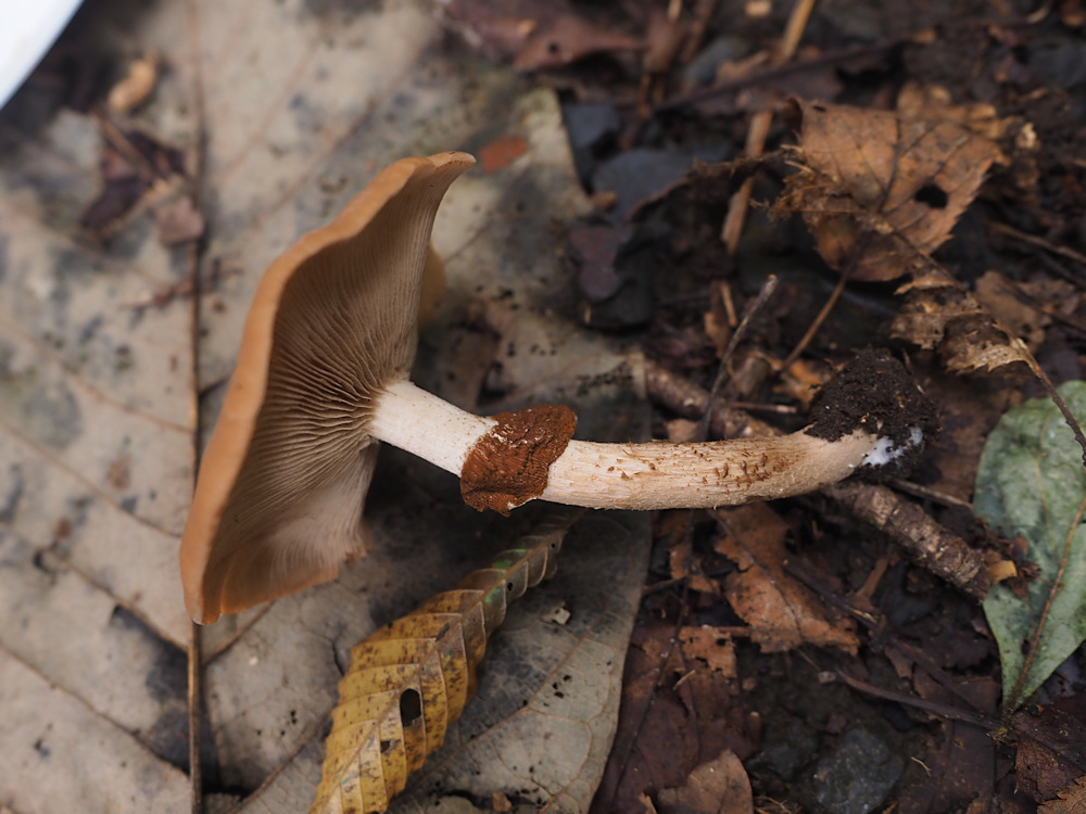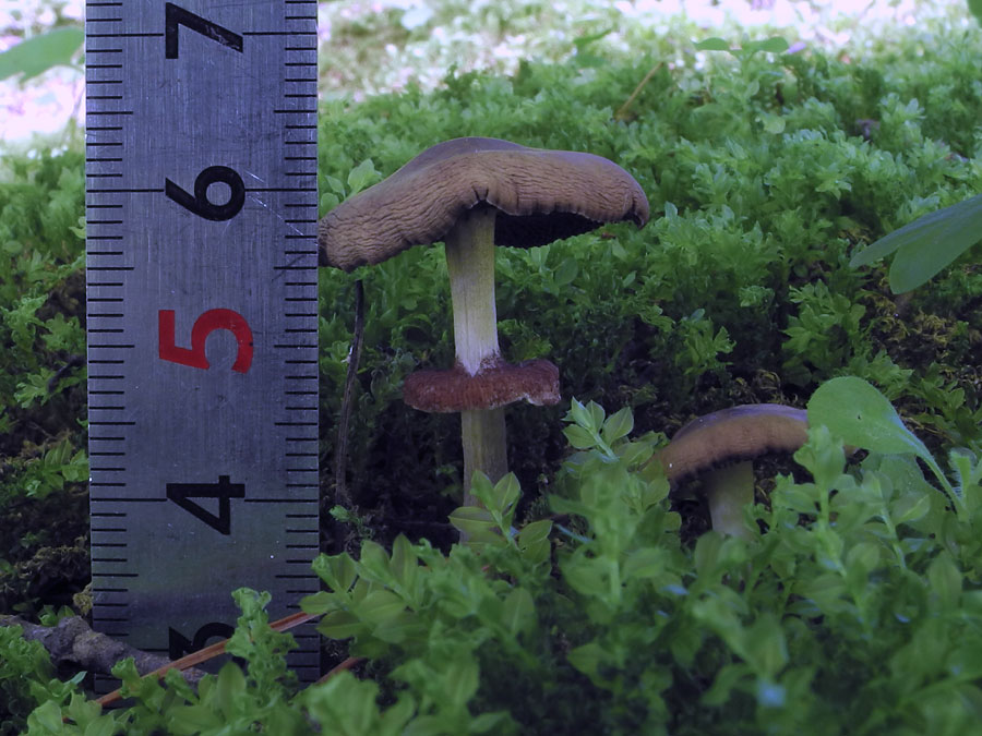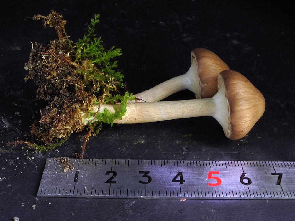 原色日本新菌類図鑑によると,日本にはツチナメコに2−3種があり,今後検討を要する。ツチナメコの傘は平滑とのことだが,この子実体はしわ条になっている。