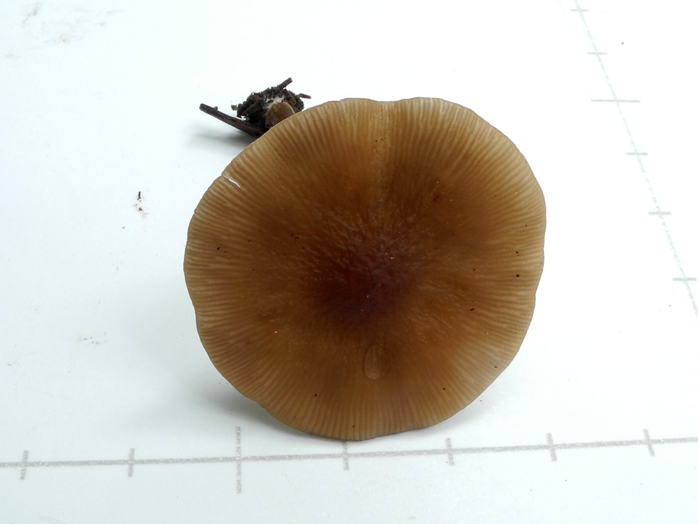 2.0-7.0cm 饅頭形→中高の平ら 湿時やや粘性 湿時周辺部に条線−乾くと条線消える 湿時は暗褐色−灰褐色−乾燥時は淡ニッケイ褐色