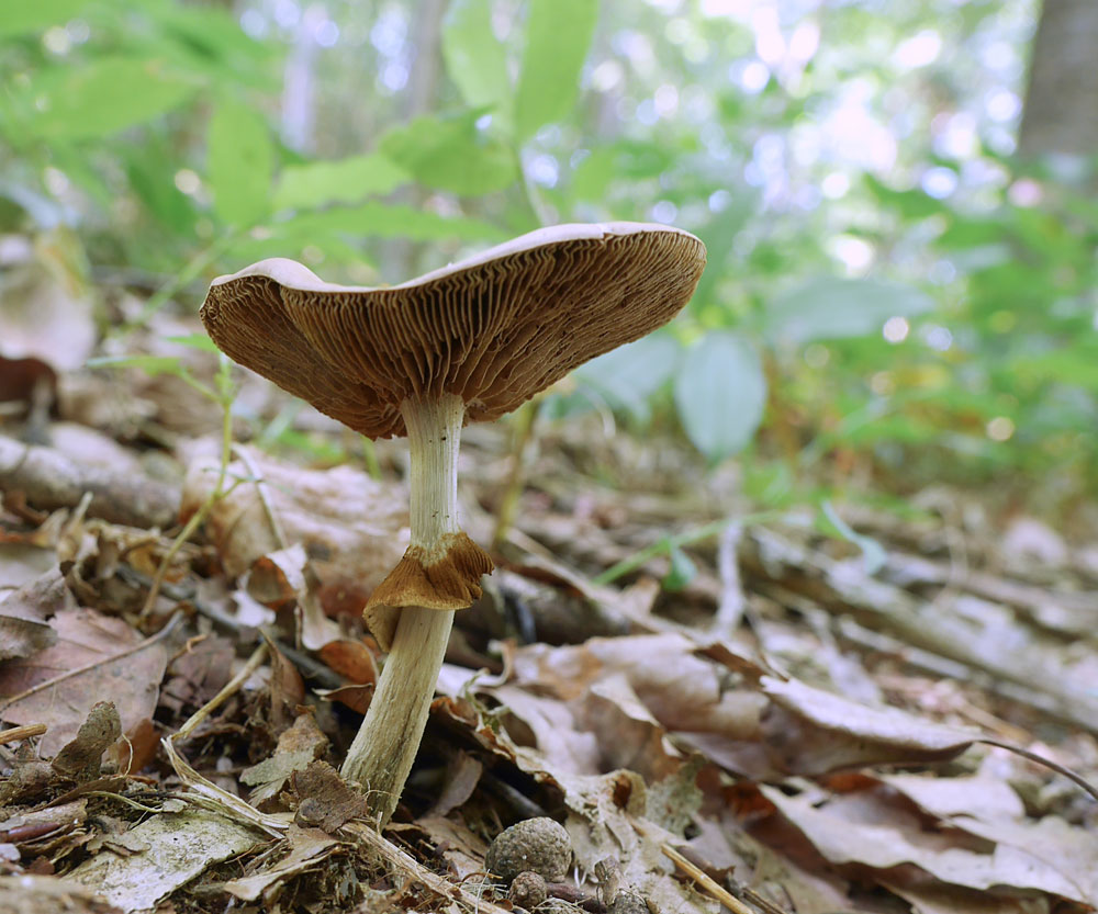 夏〜秋にブナ・ミズナラなど林内−庭園内地上に発生する