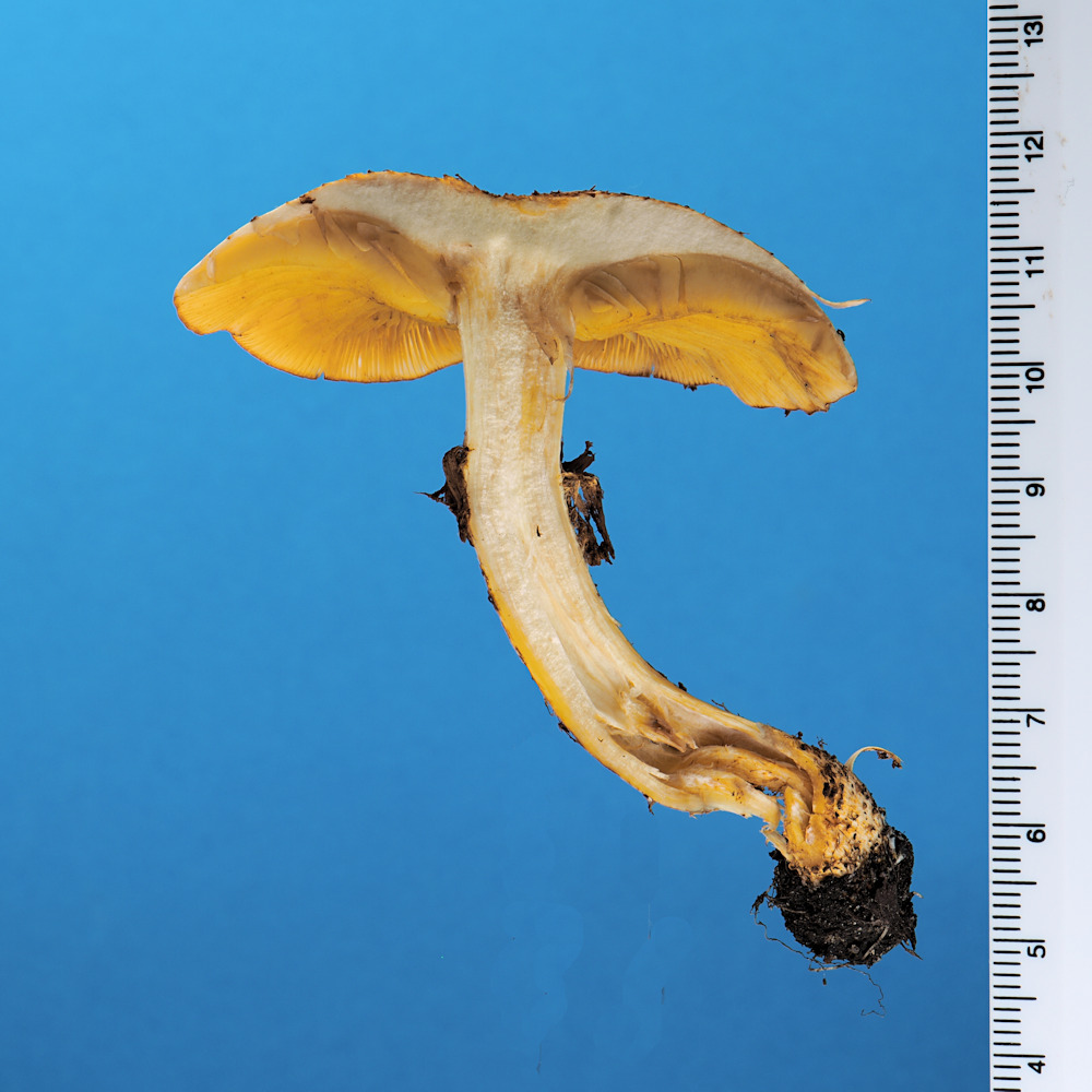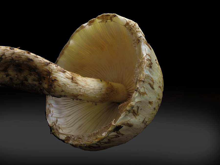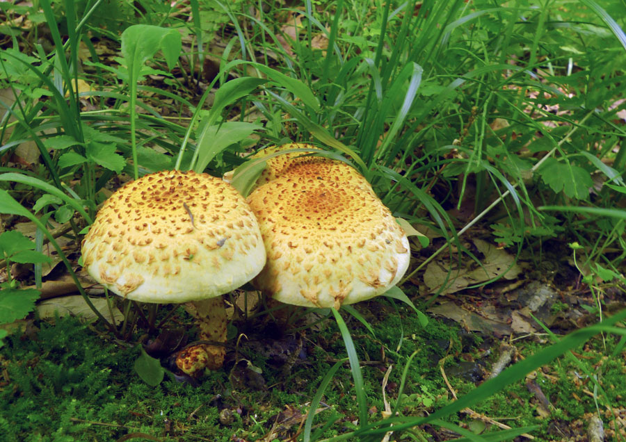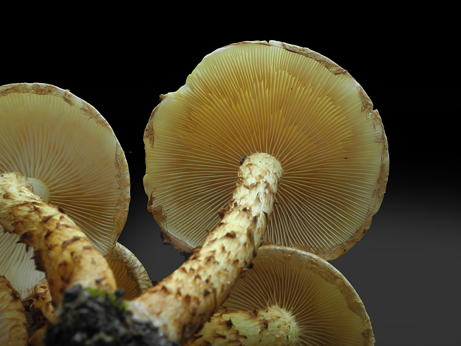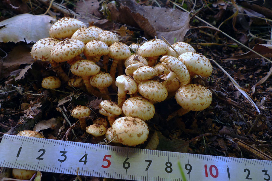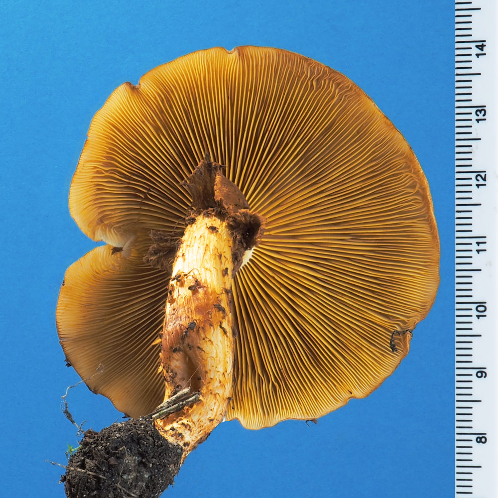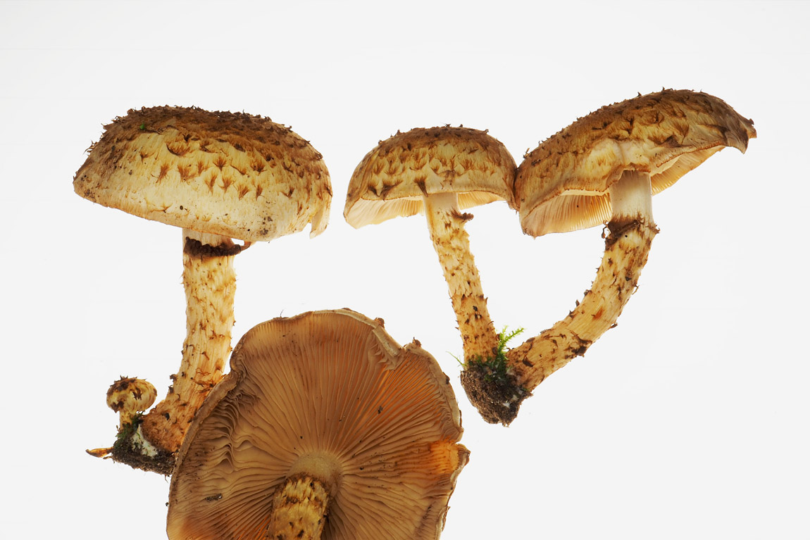 3.0-7.0cm やや円錐状山形→まんじゅう形→ほぼ平 淡黄色−淡黄褐色 褐色−暗褐色の荒いささくれ状鱗片でおおわれる 粘性なし