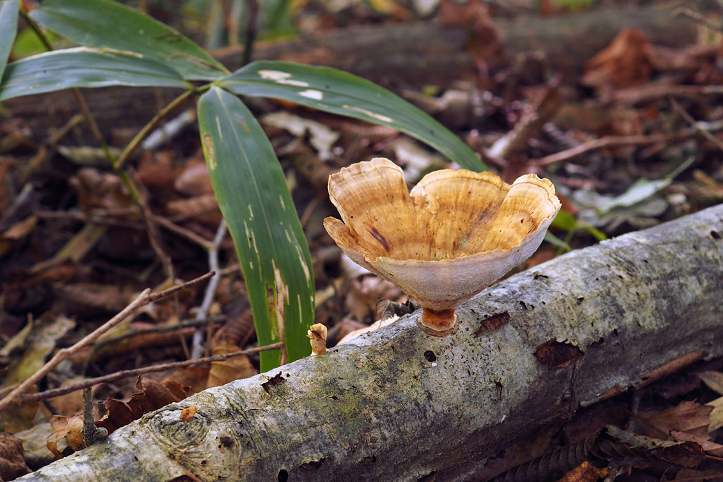 夏〜秋に広葉樹倒木上−落枝上に発生する